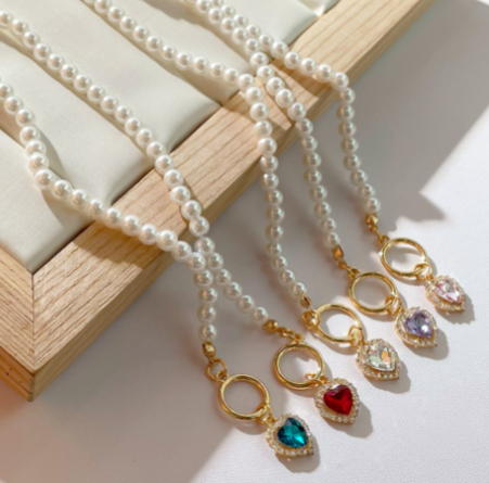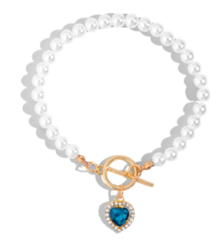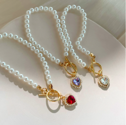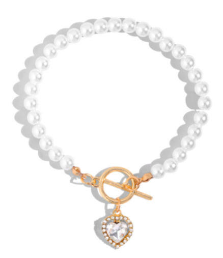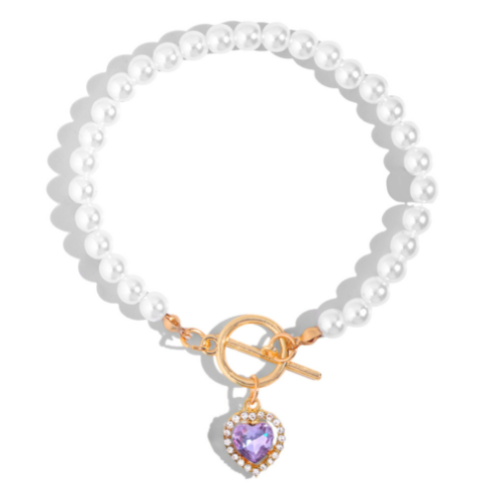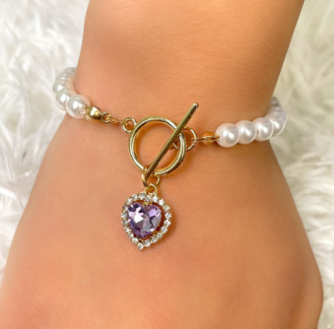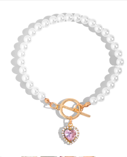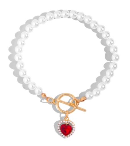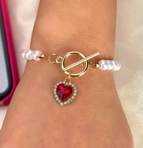 Red Crystal Heart Pendant Pearl Beaded Bracelet