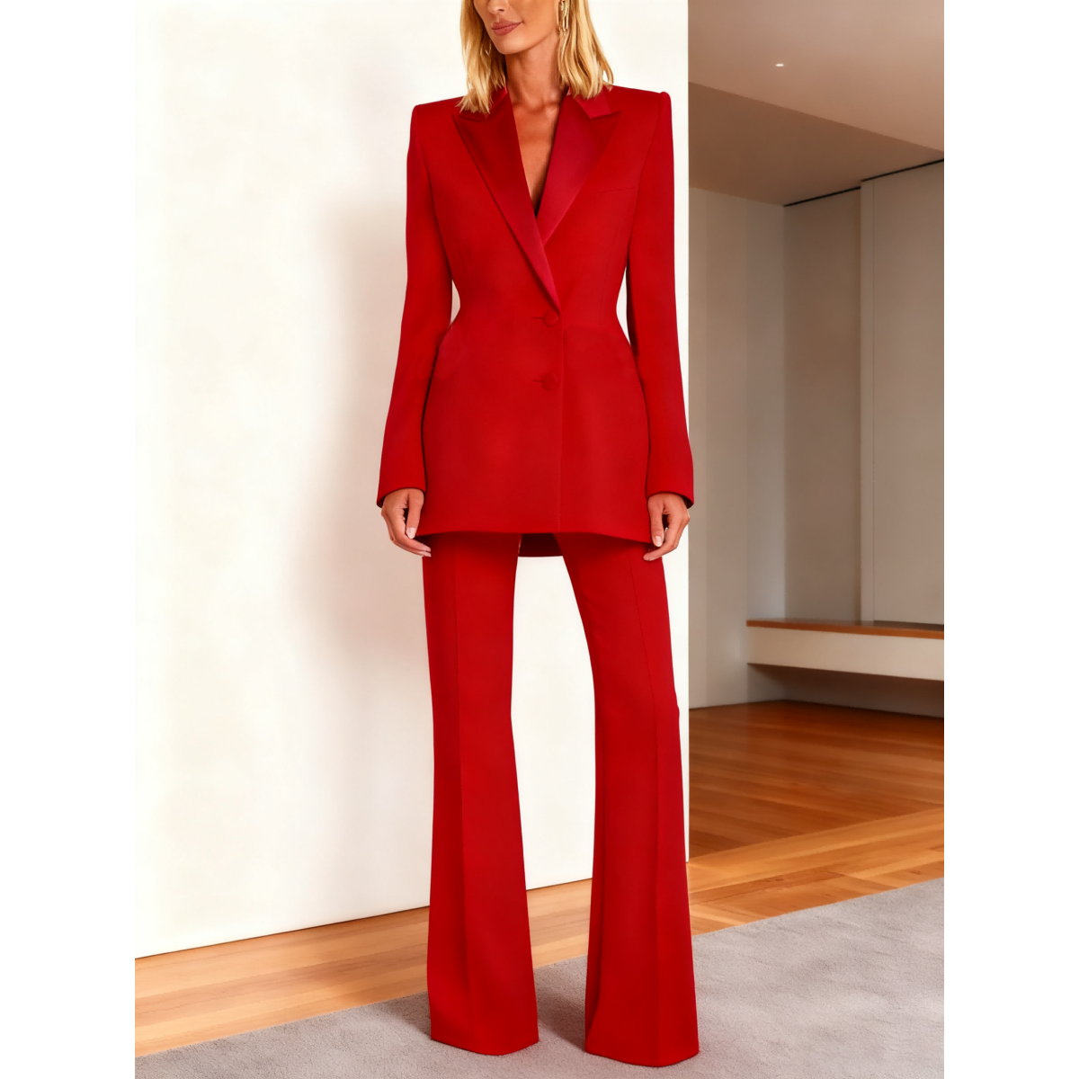 Red Double Breasted Satin Lapel Blazer And Trousers 2-Piece Suit