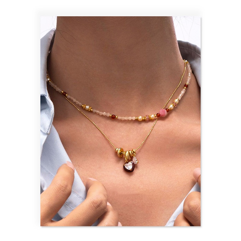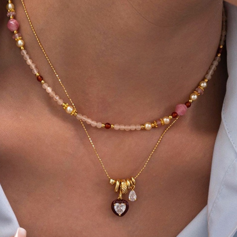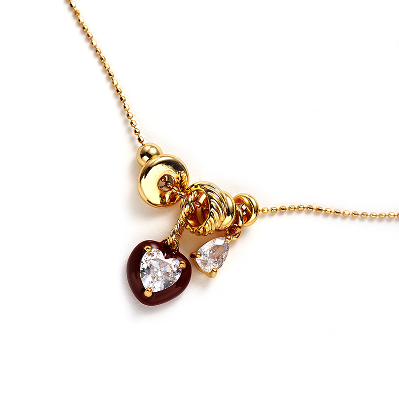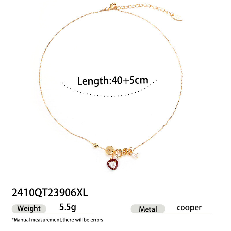 Red Dripping Oil Heart Shaped Inlaid Zircon Pendant Necklace