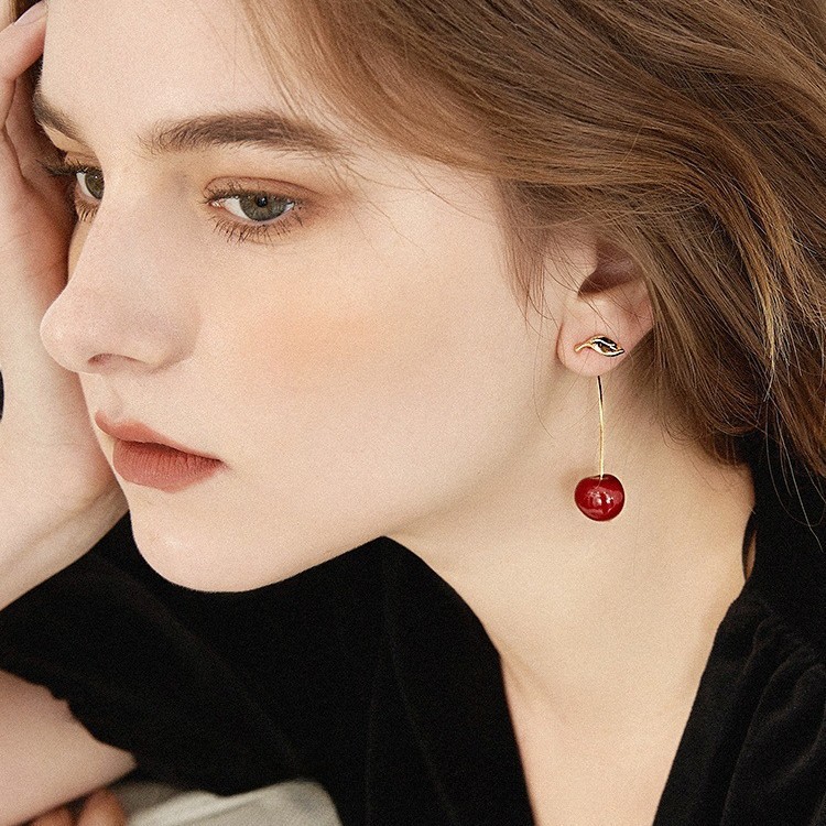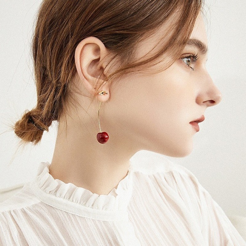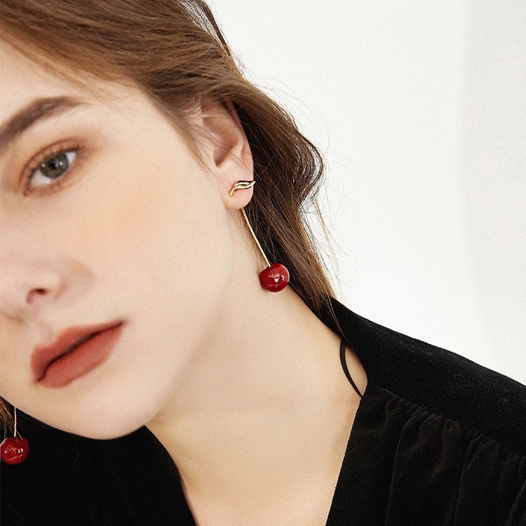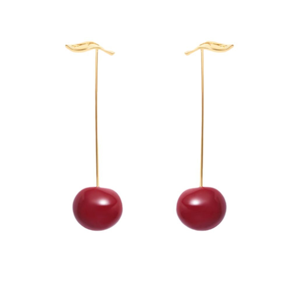 Red Enamel Cherry-shaped Long Earrings