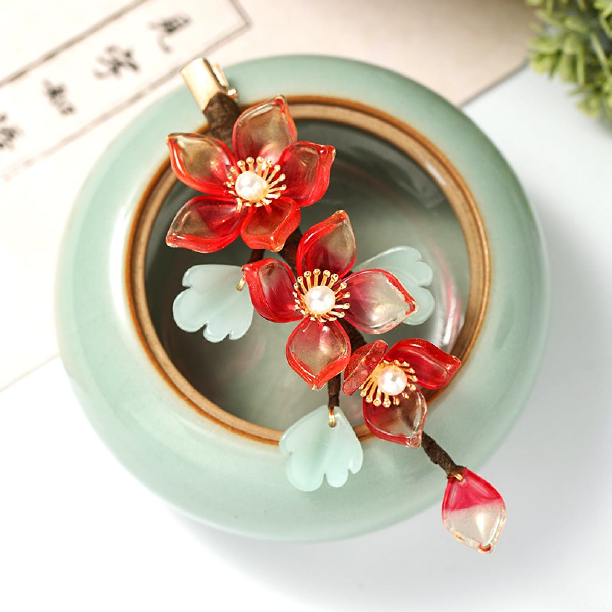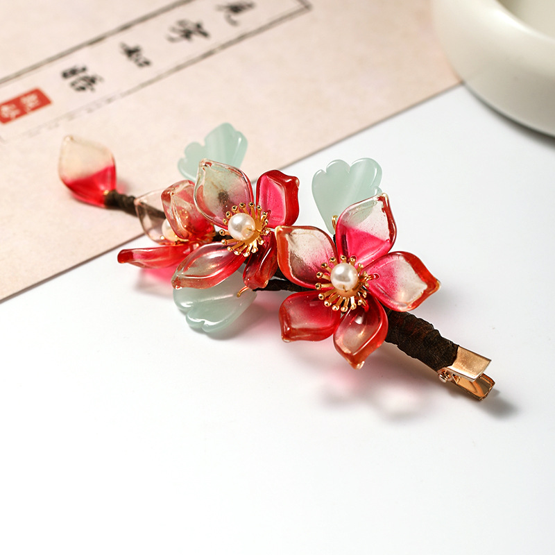 Red Female Antique Crystal Flower Hairpin Hanfu Ancient Costume Accessories