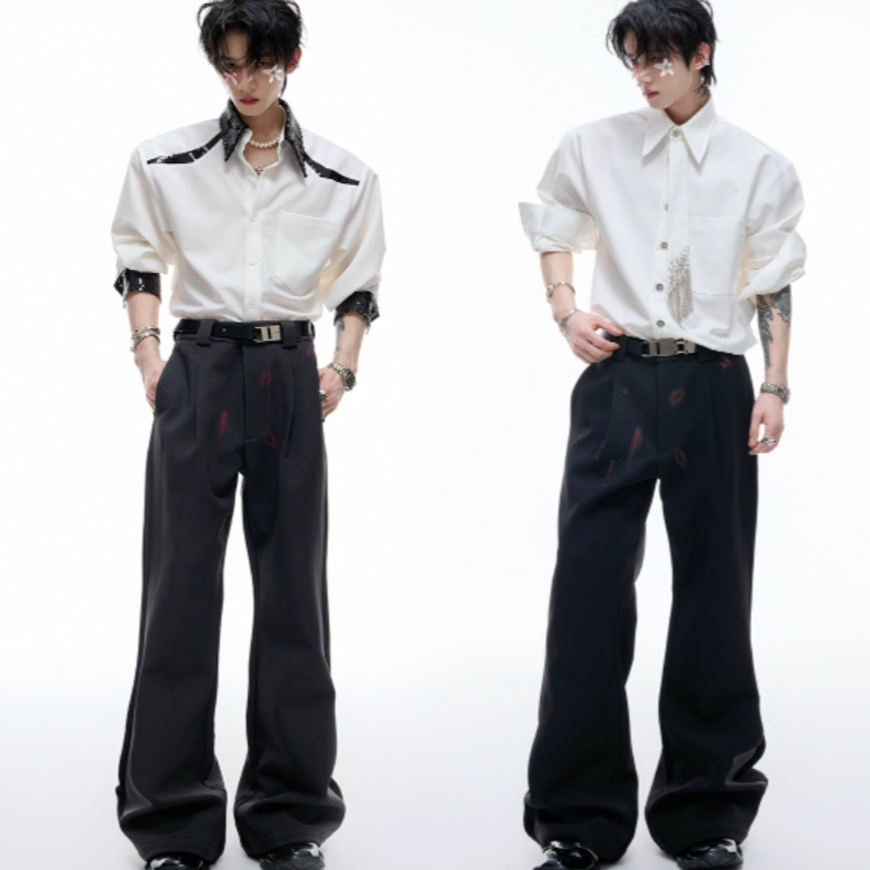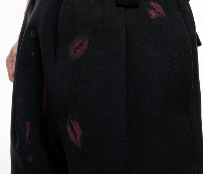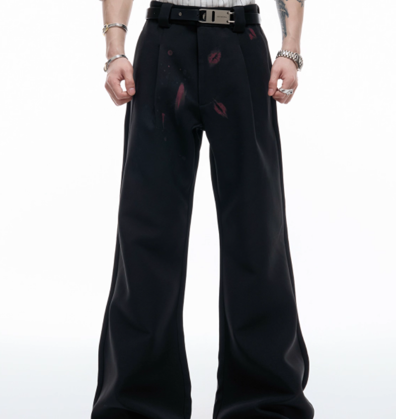 Red Lip Print Suit Pants Slightly Stretch High Draping Effect Trousers
