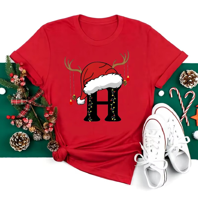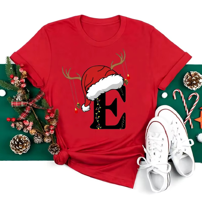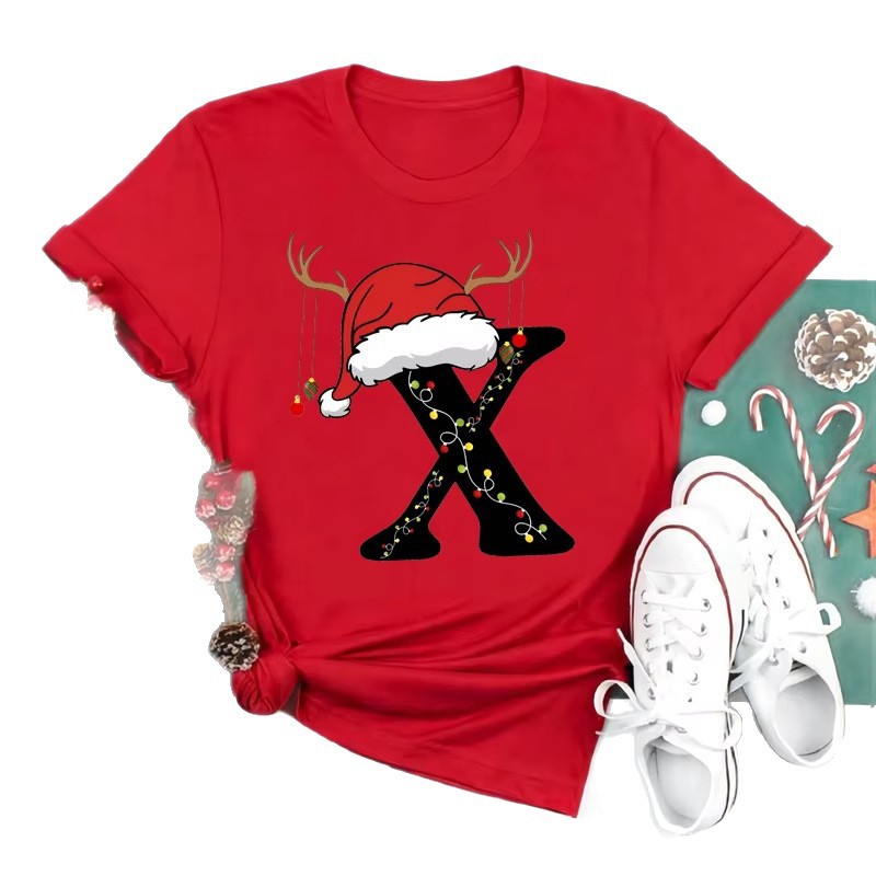 Red Loose T-Shirt Top With A Christmas Party Aesthetic