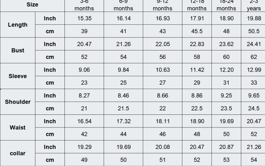 Size: 3-6M, 6-9M, 9-12M, 12-18M, 18-24M, 3Y
