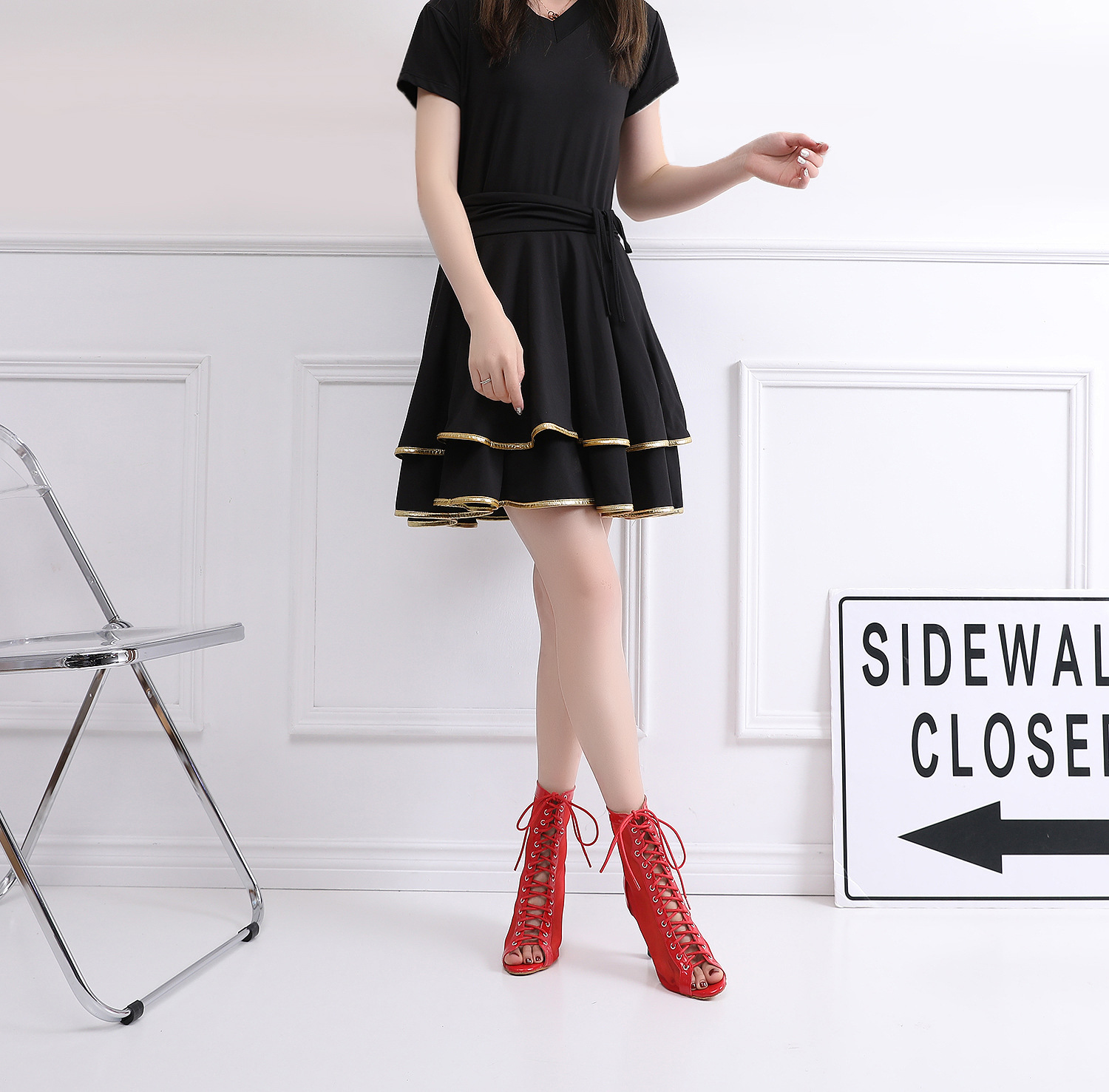 Red Modern High Heel Latin Dance Shoes
