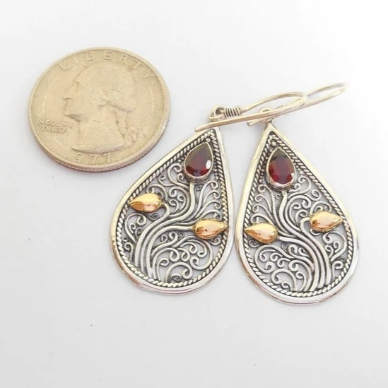 Red Pine Gem Exaggerated Earrings Two-color Retro Court Earrings