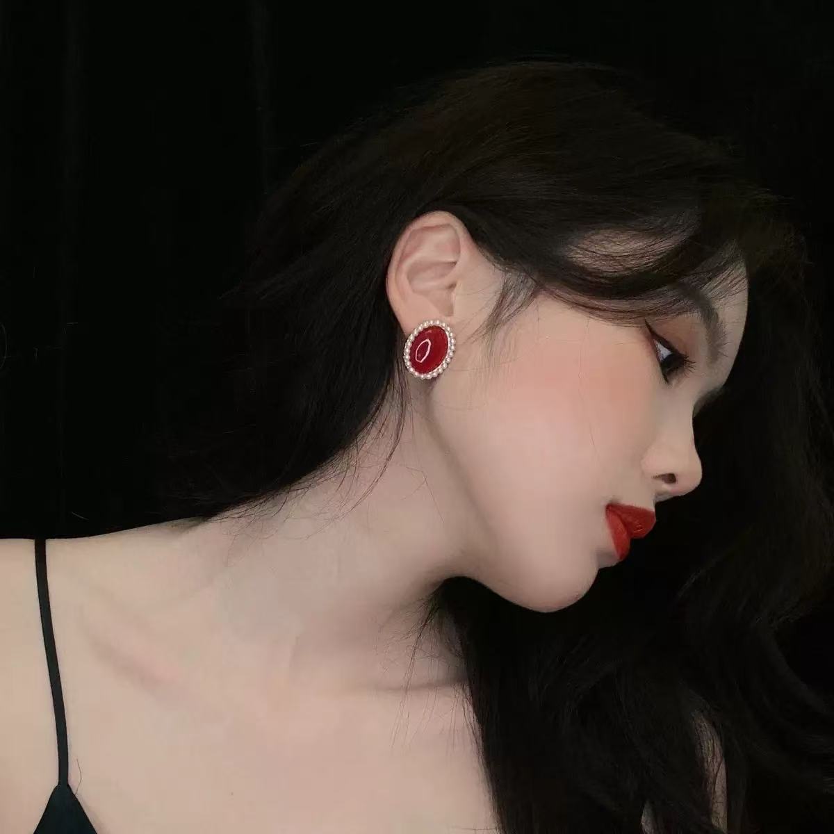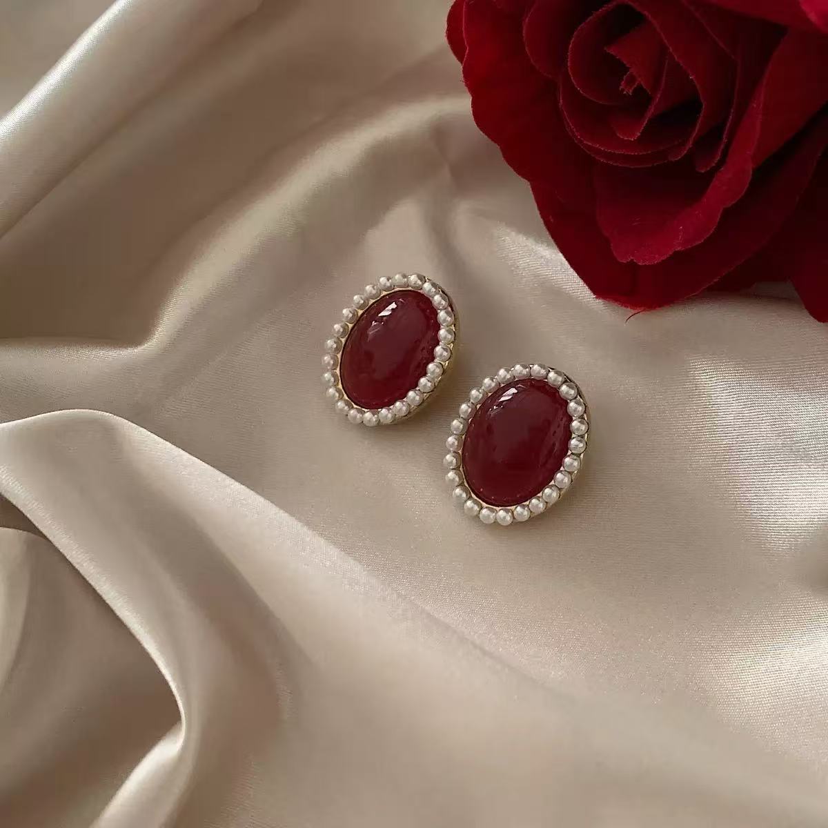 Color: oval pearl white (ear studs), Ruby Pearl (ear studs)