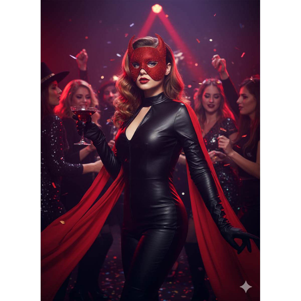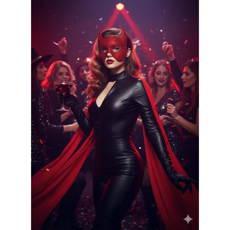 Unleash your bold and mysterious side with this dazzling devil horn masquerade mask. Hand-decorated with shimmering red rhinestones, this mask catches the light beautifully and adds instant glamour to any event. The dramatic devil horn design makes it perfect for standing out at parties, festivals, and special occasions.