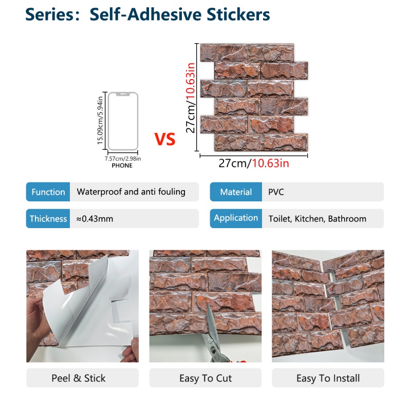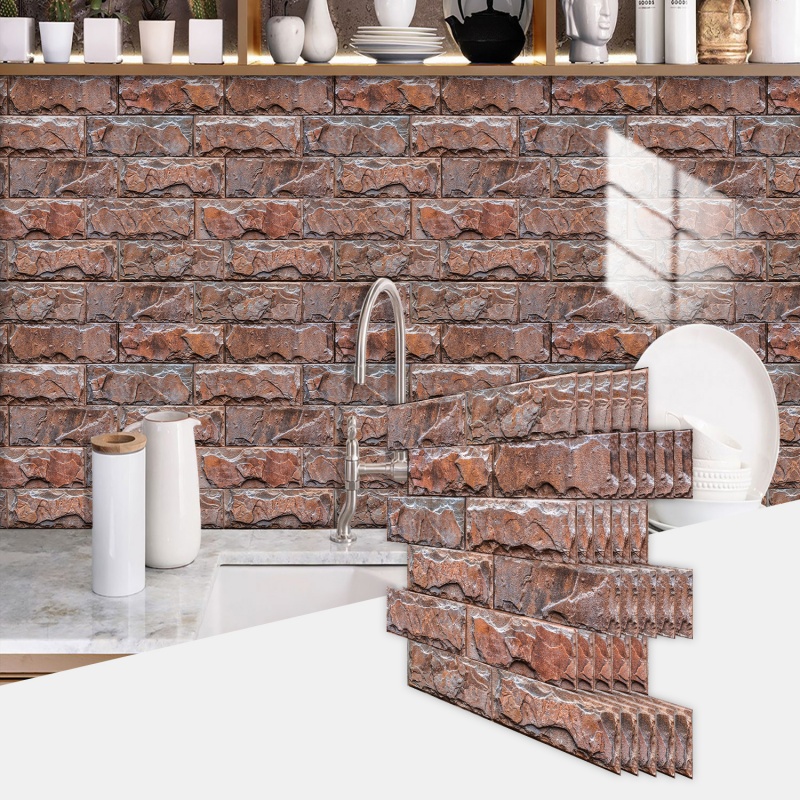 Red Rock Wall Stickers Wallpaper Waterproof And Oil-proof PVC Self-adhesive Decoration Easy To Maintain, Suitable For Kitchen, Bathroom, Toilet Wall Decoration