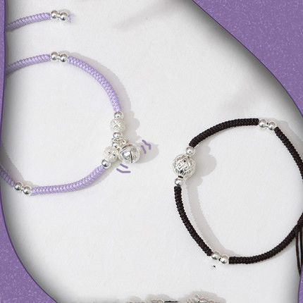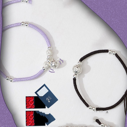 C: [Purple and Black Pair] Couple Anklet + Bow Gift Box