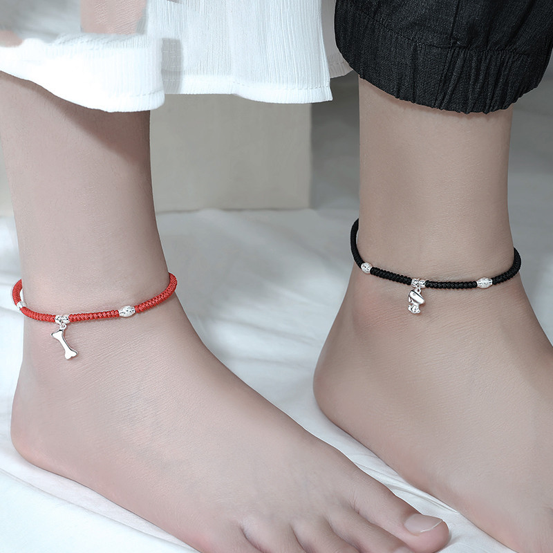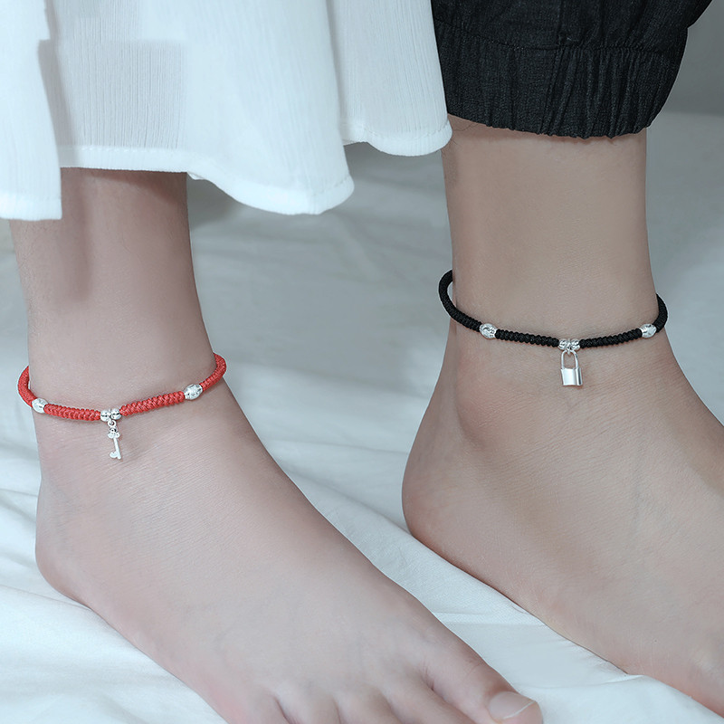 A:[Red and black pair] Couple's anklet + bow gift box