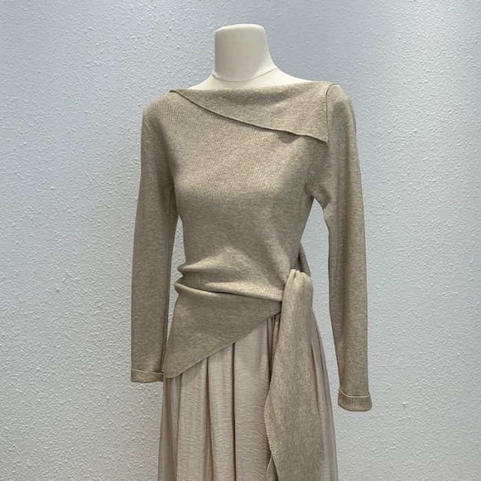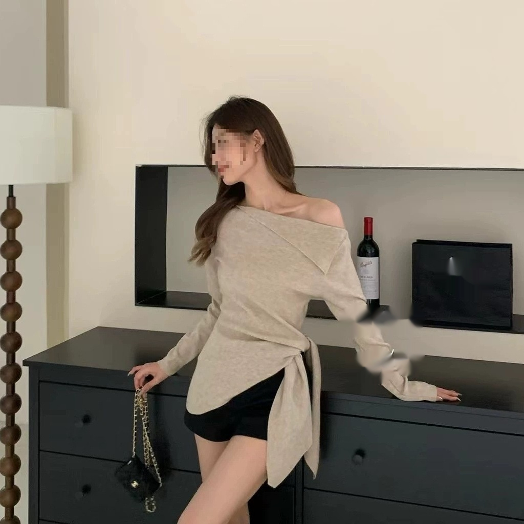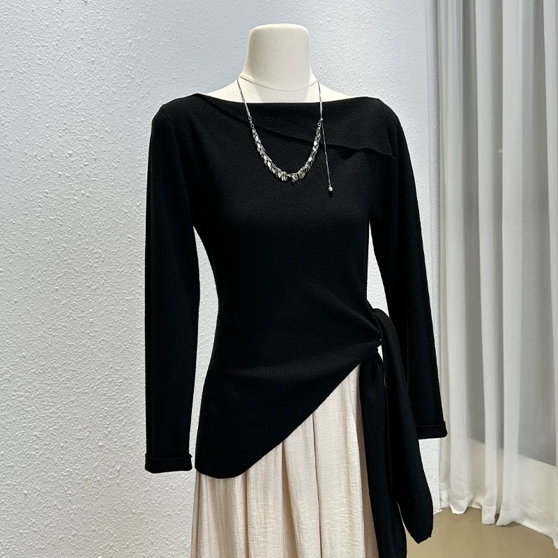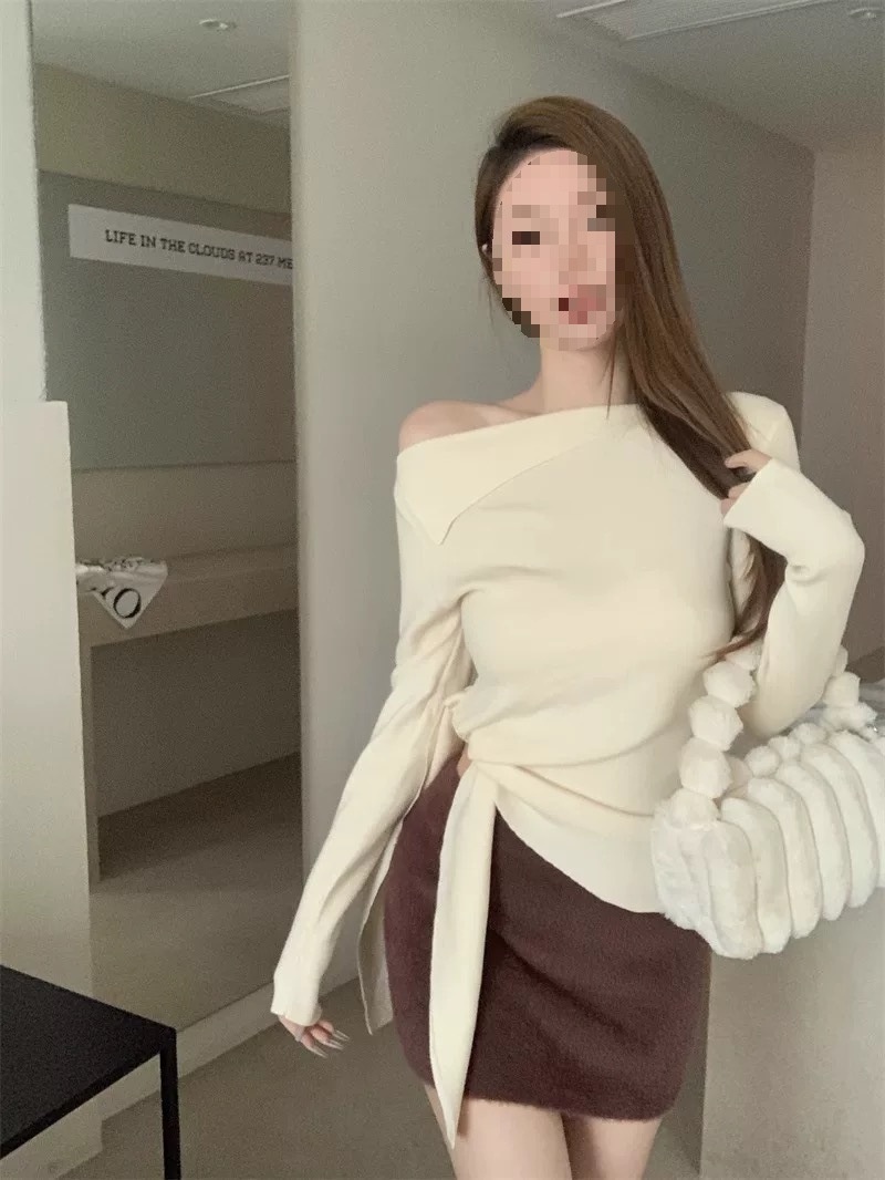 Red Solid Color One-shoulder Collar Pullover Top
