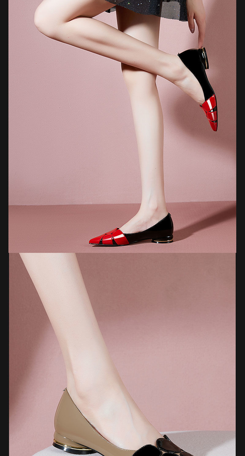 Red thick heel flat soft leather women's shoes