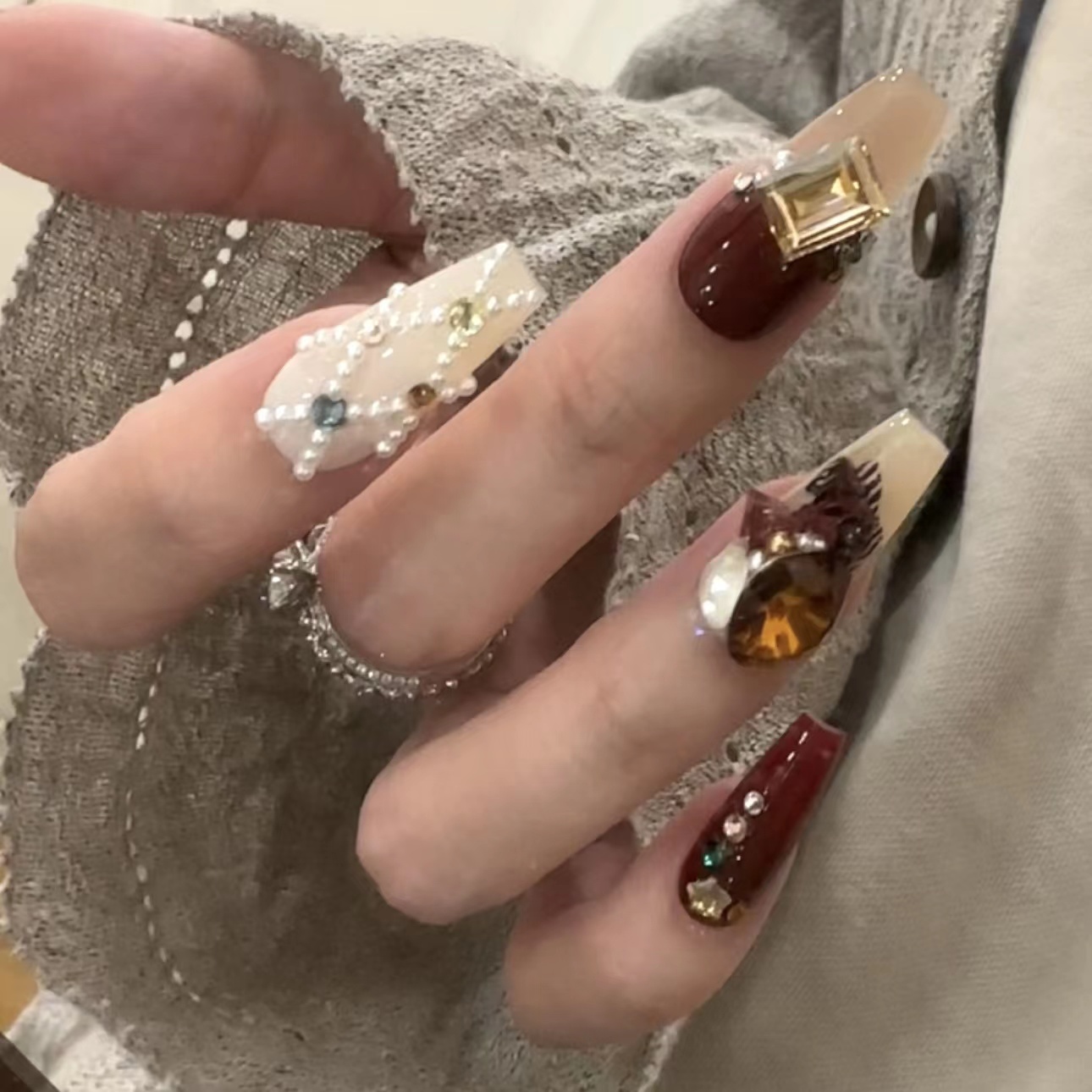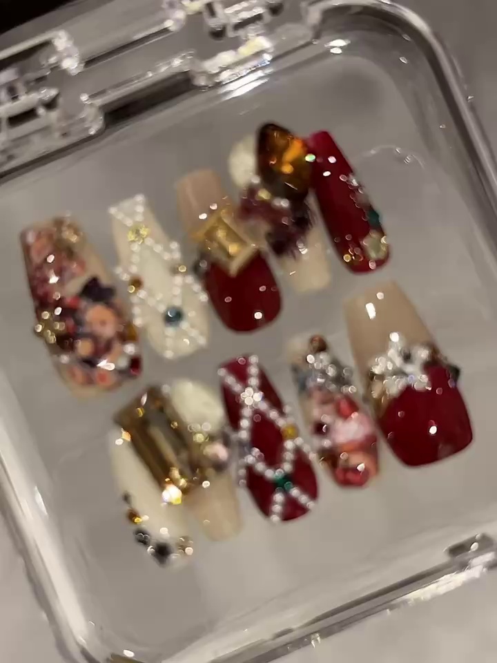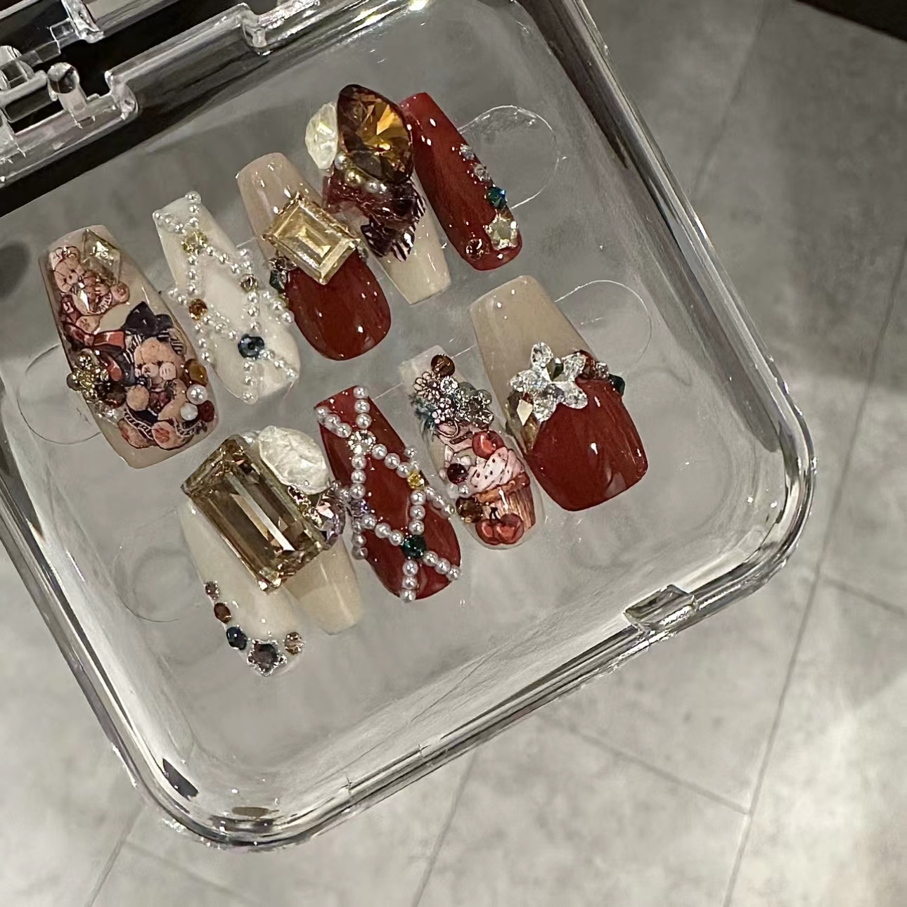 Red Velvet Bear White Cute Retro Wear Nail Tip Customized