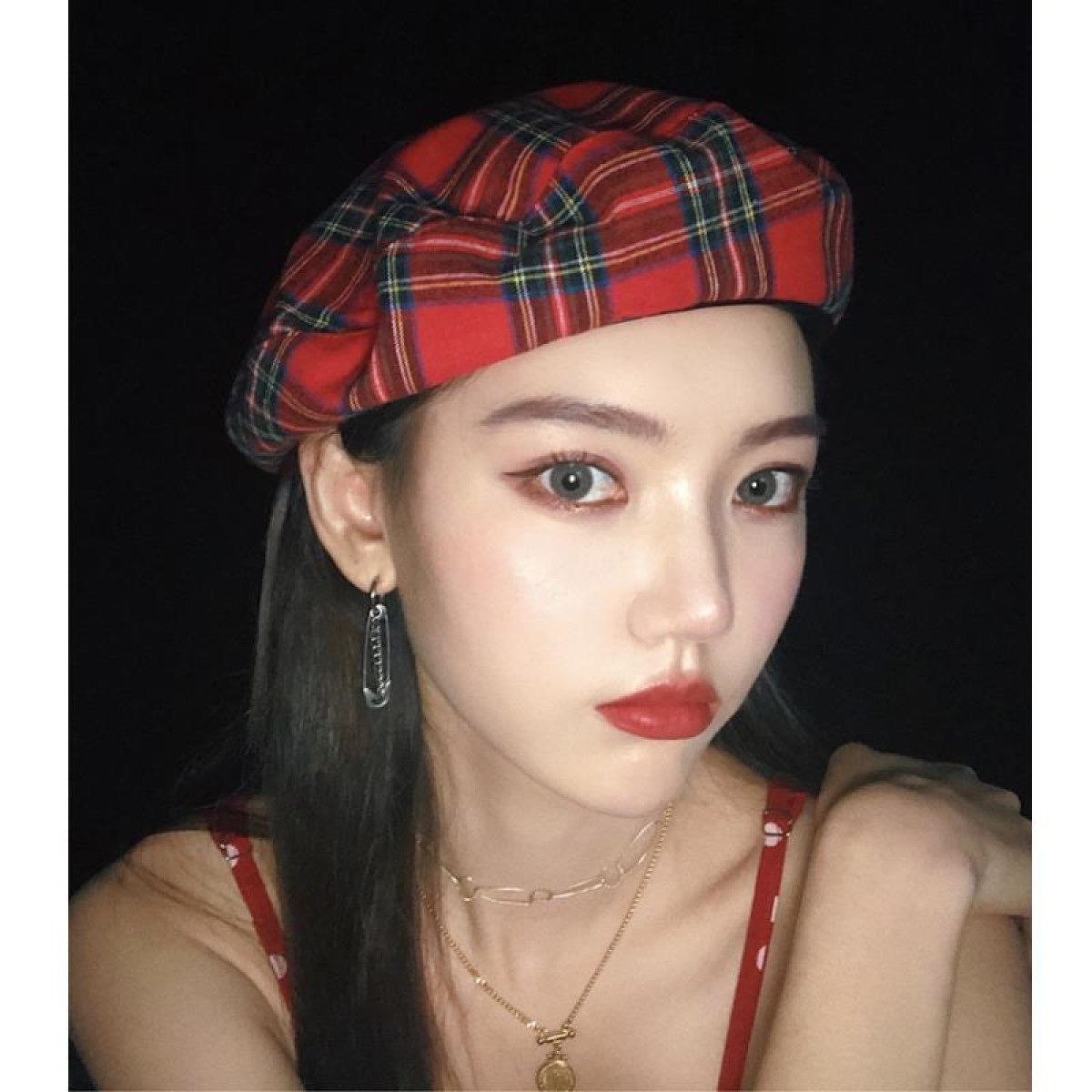 Specification:Main material: otherSize: AdjustableColor classification: Red grid, green grid, beige gridStyle: beretPacking list: