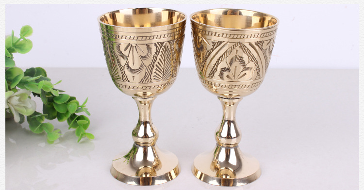 Product Information: Material: Copper alloyCapacity: 101-200ml Color: golden Packing list: Wine glass*1