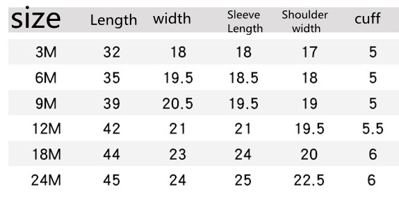Size: 3M, 6M, 9M, 12M, 18M, 24M