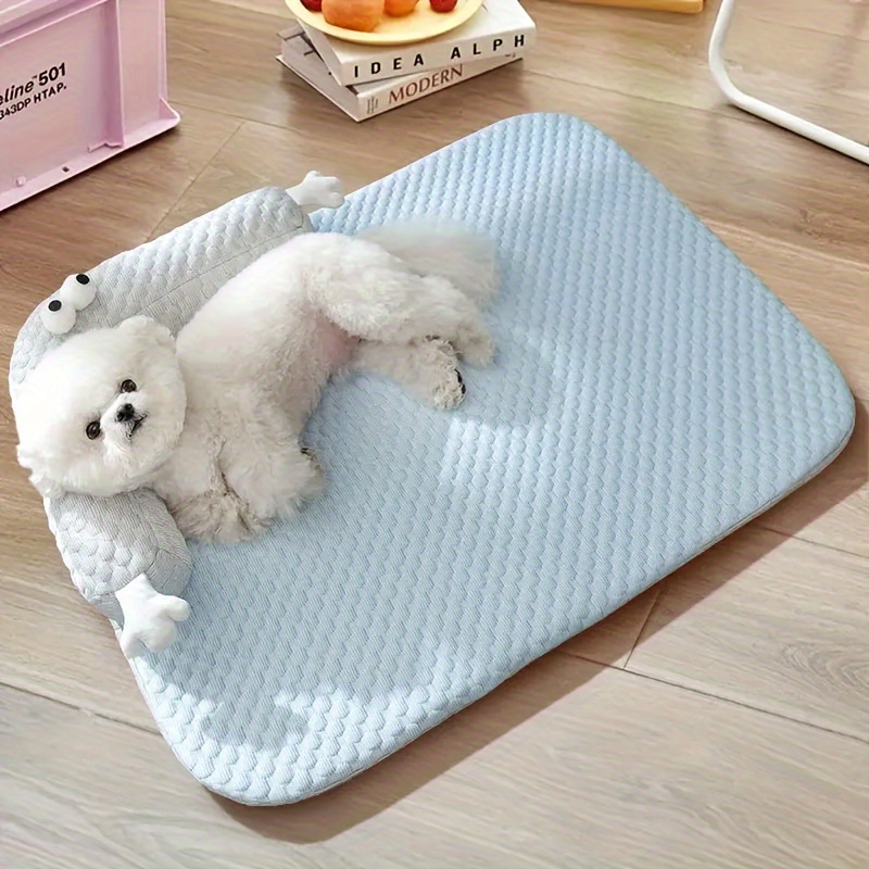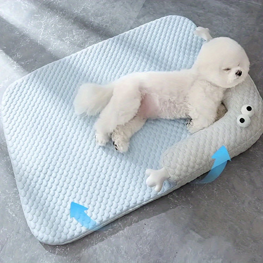 Refreshing Pet Bed With Big-eyed Monster Design Breathable Non Slip Polyester Sofa Cushion For Dogs And Cats Summer Floor Sleeping Pad For Home And Outdoor Use