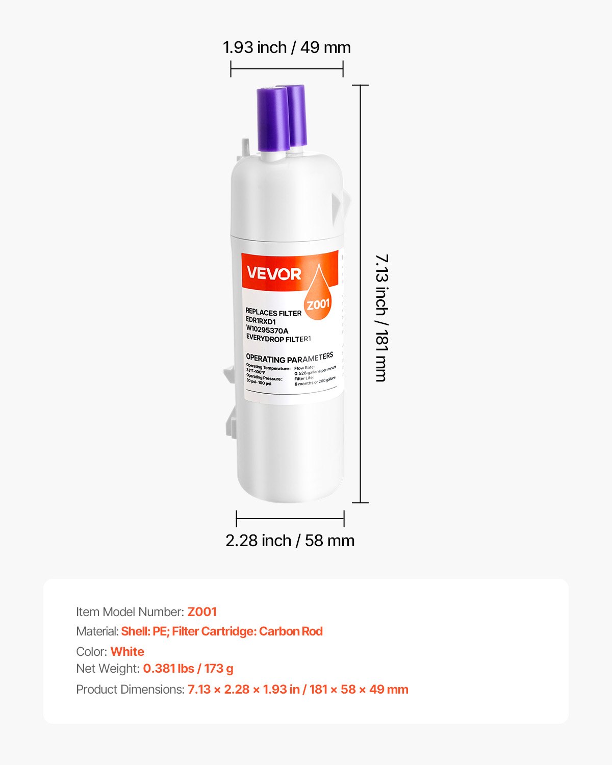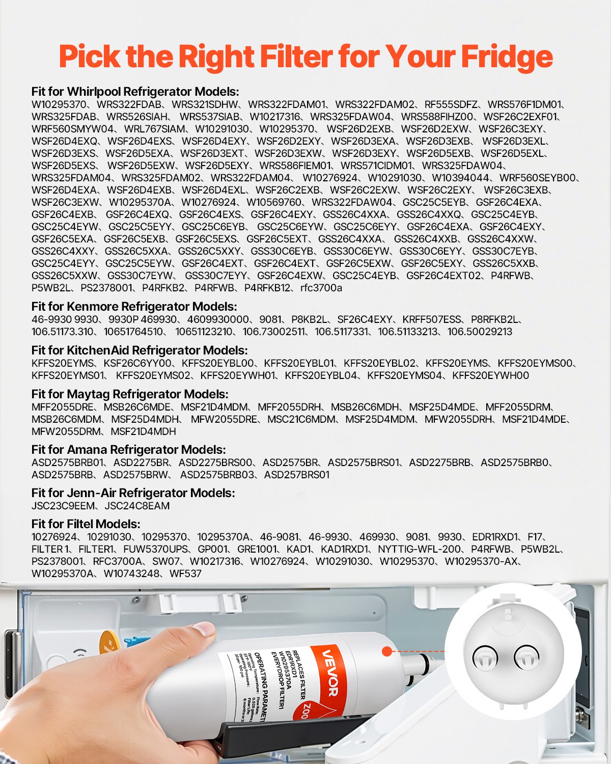 Refrigerator Water Filter Replacement EDR1RXD1 Remove 70Contaminants White