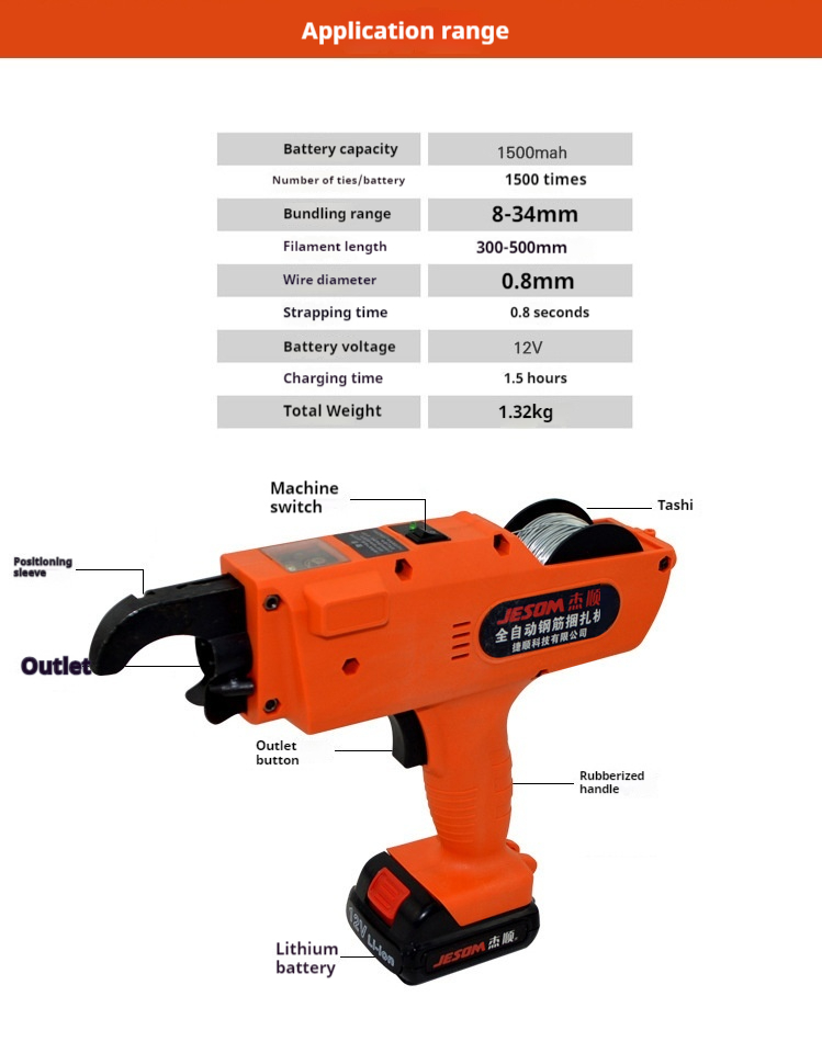Specification: jiesun 8-34mm 2 batteries send 2 plates of wire tie, jiesun 30-60mm 2 batteries send 2 plates of wire tie, 20 plates of wire tie