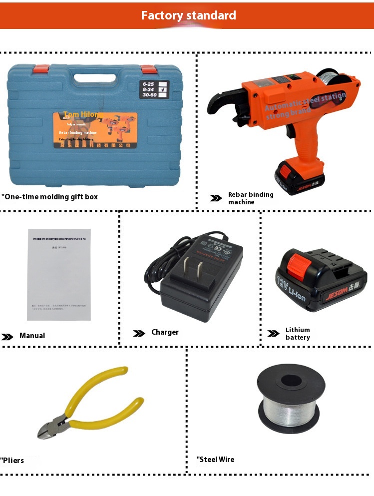 Gift box+steel bar tying machine+instruction manual+pliers+charger+steel wire+lithium battery/Tie wire * 20 discs