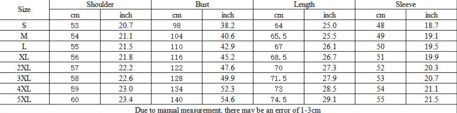 Sizes: S, M, L, XL, 2XL, 3XL, 4XL, 5XL