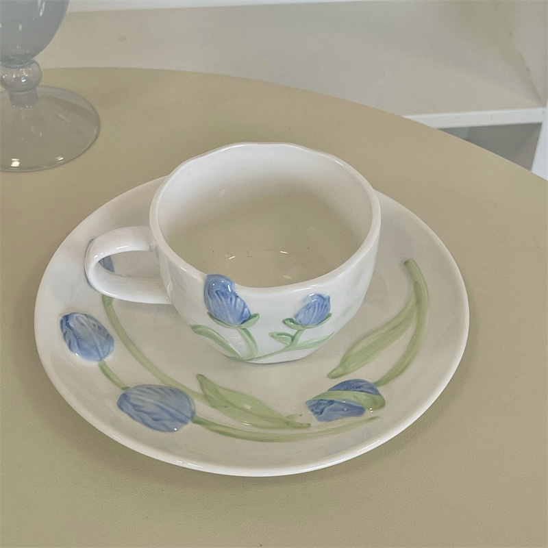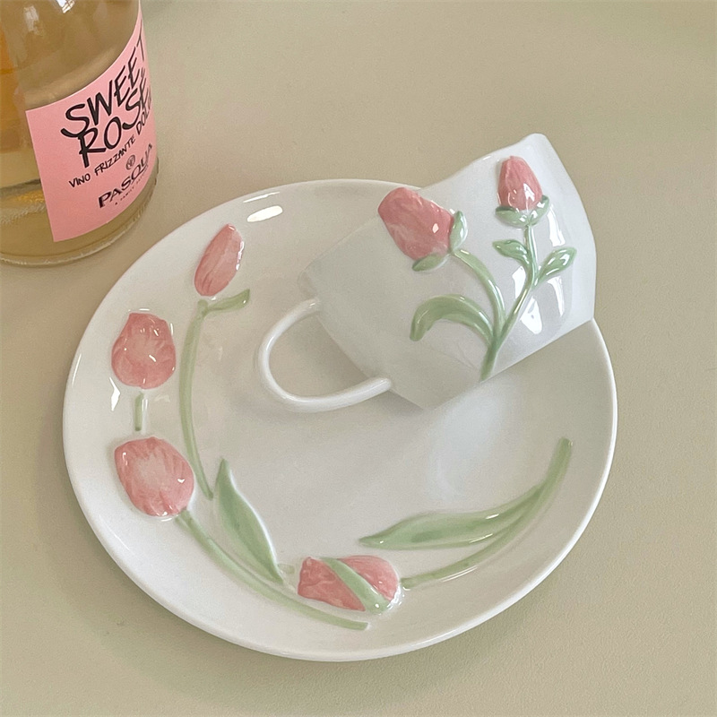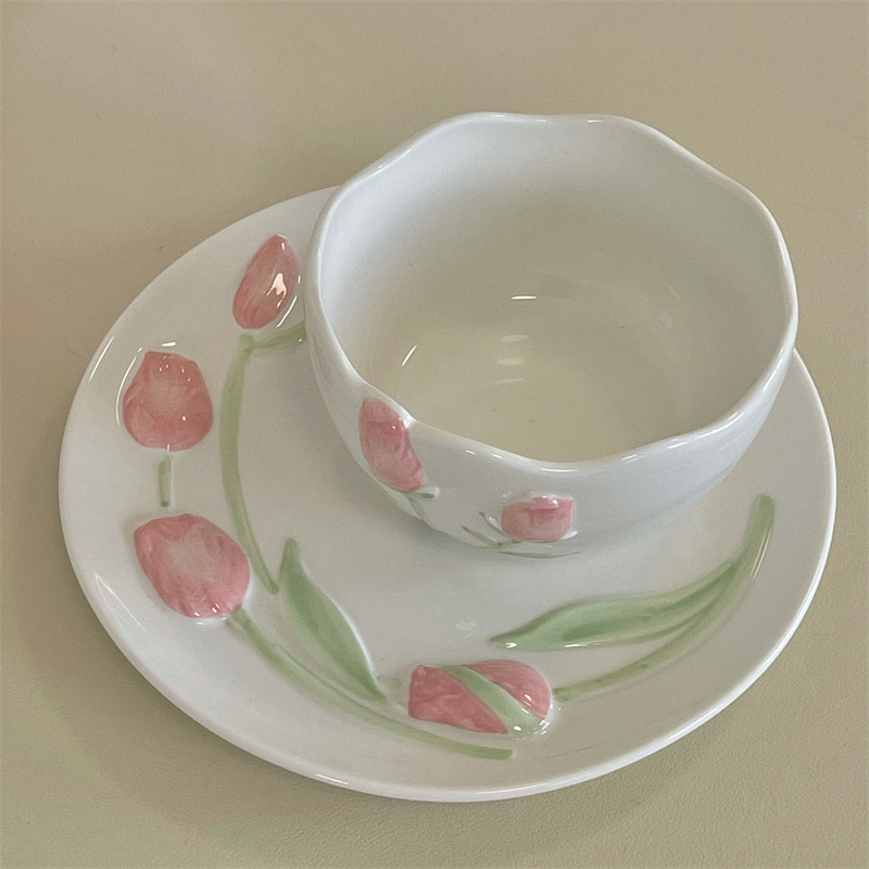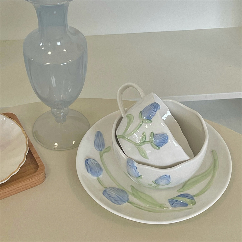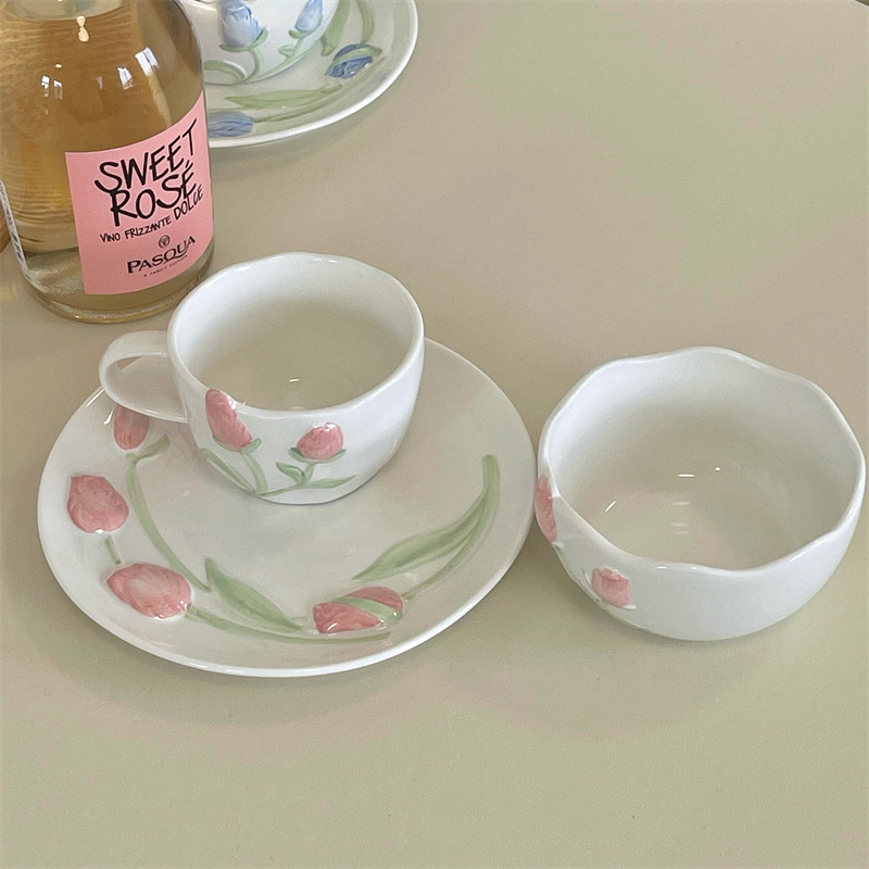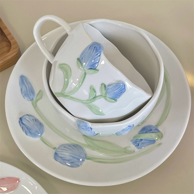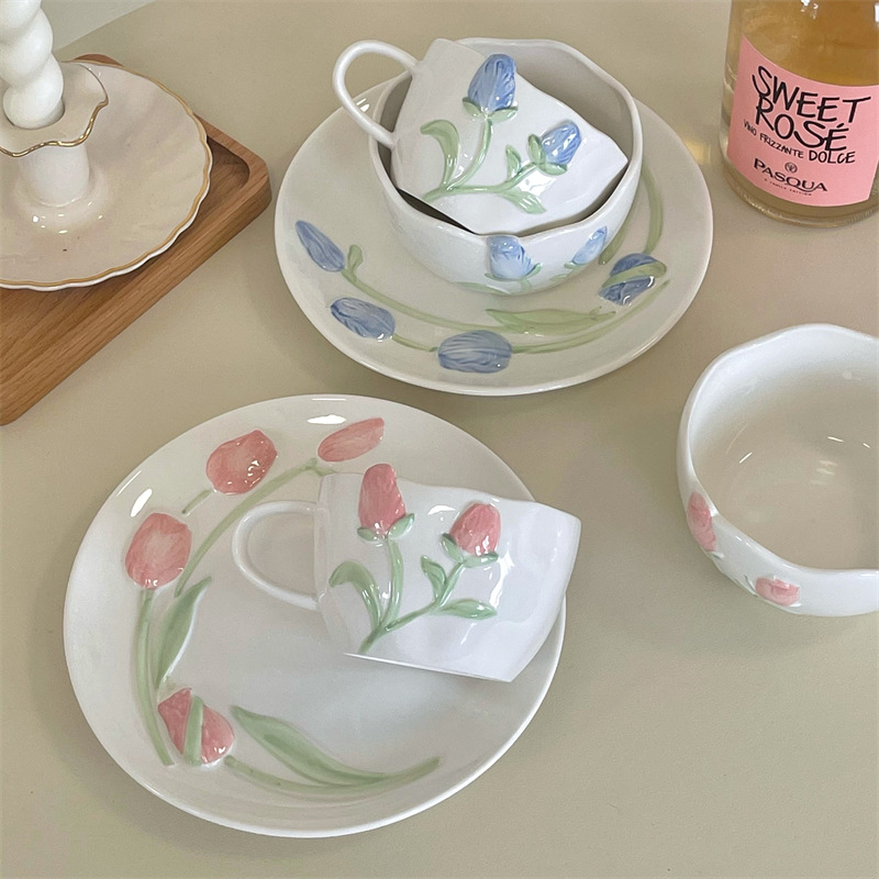 Relief Three-dimensional Tulip Retro French Ceramic Dinner Plate Breakfast Bowl
