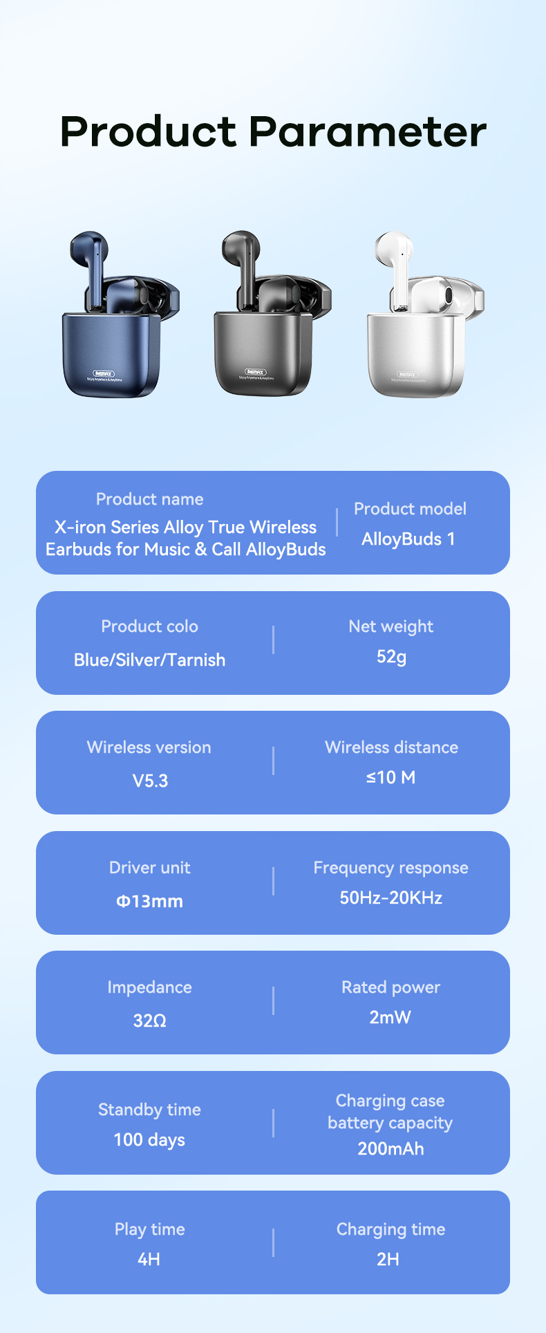 REMAX AlloyBuds 1 Black Iron Alloy True Wireless Music Call Earphones