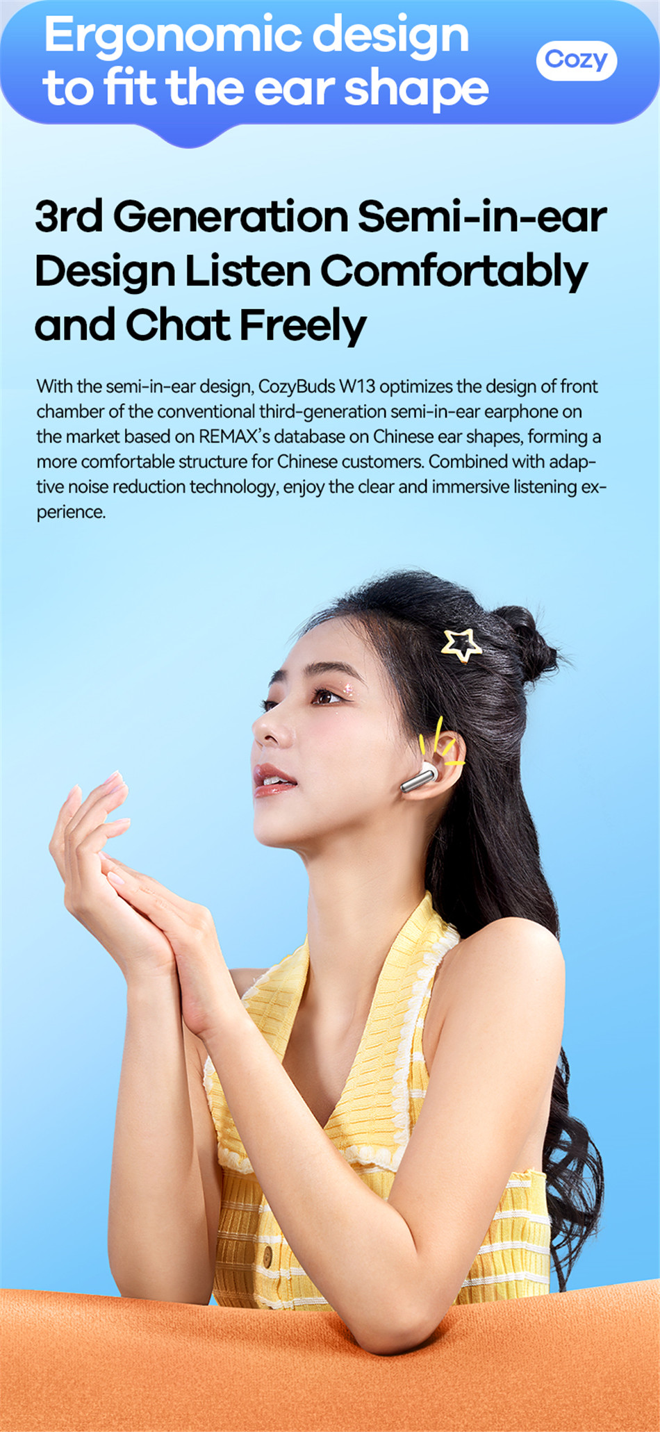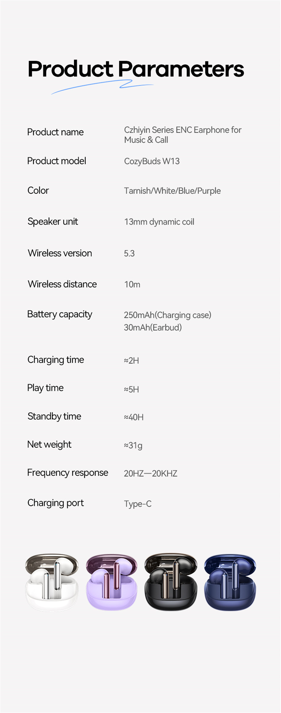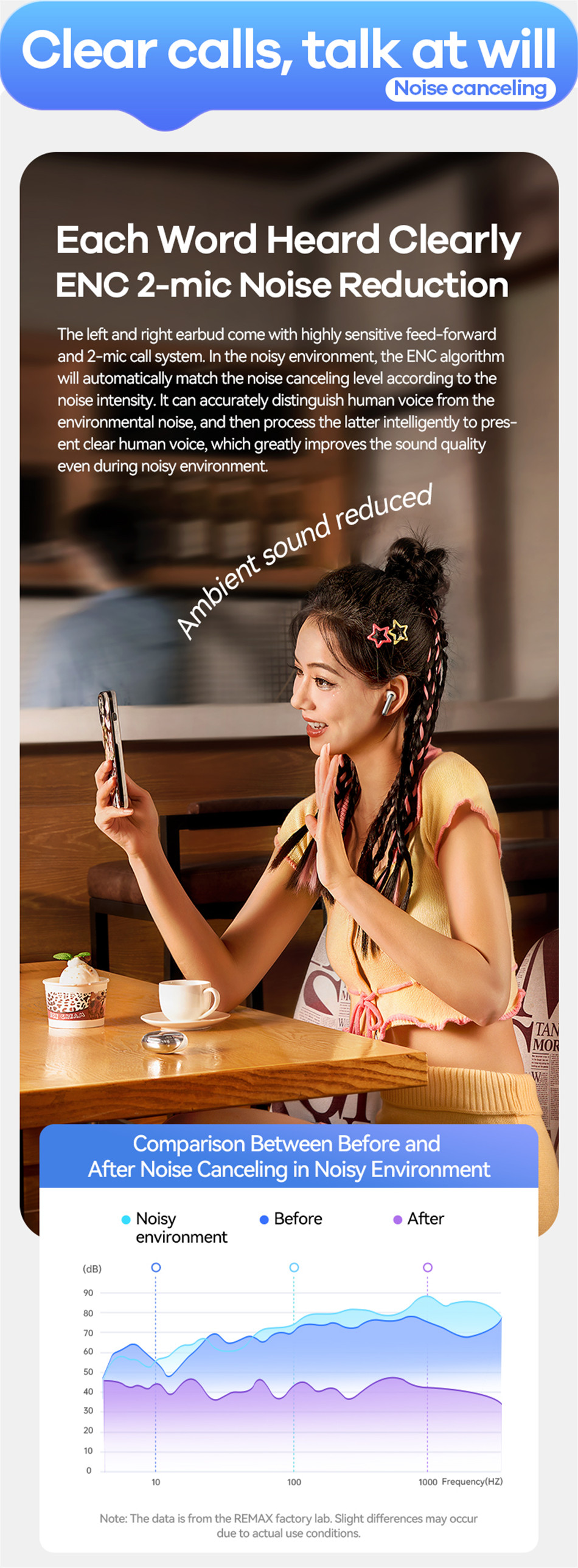 REMAX CozyBuds W13 ENC True Wireless Earbuds Noise Canceling Bluetooth Earphone Dual-Mic For Call And Music