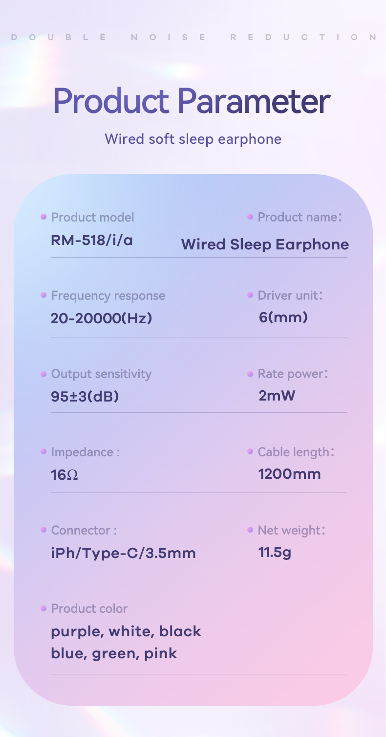 • Active Noise Cancelling :Experience a peaceful and uninterrupted sleep with Remax Soft Sleep Earphones' active noise cancelling feature.