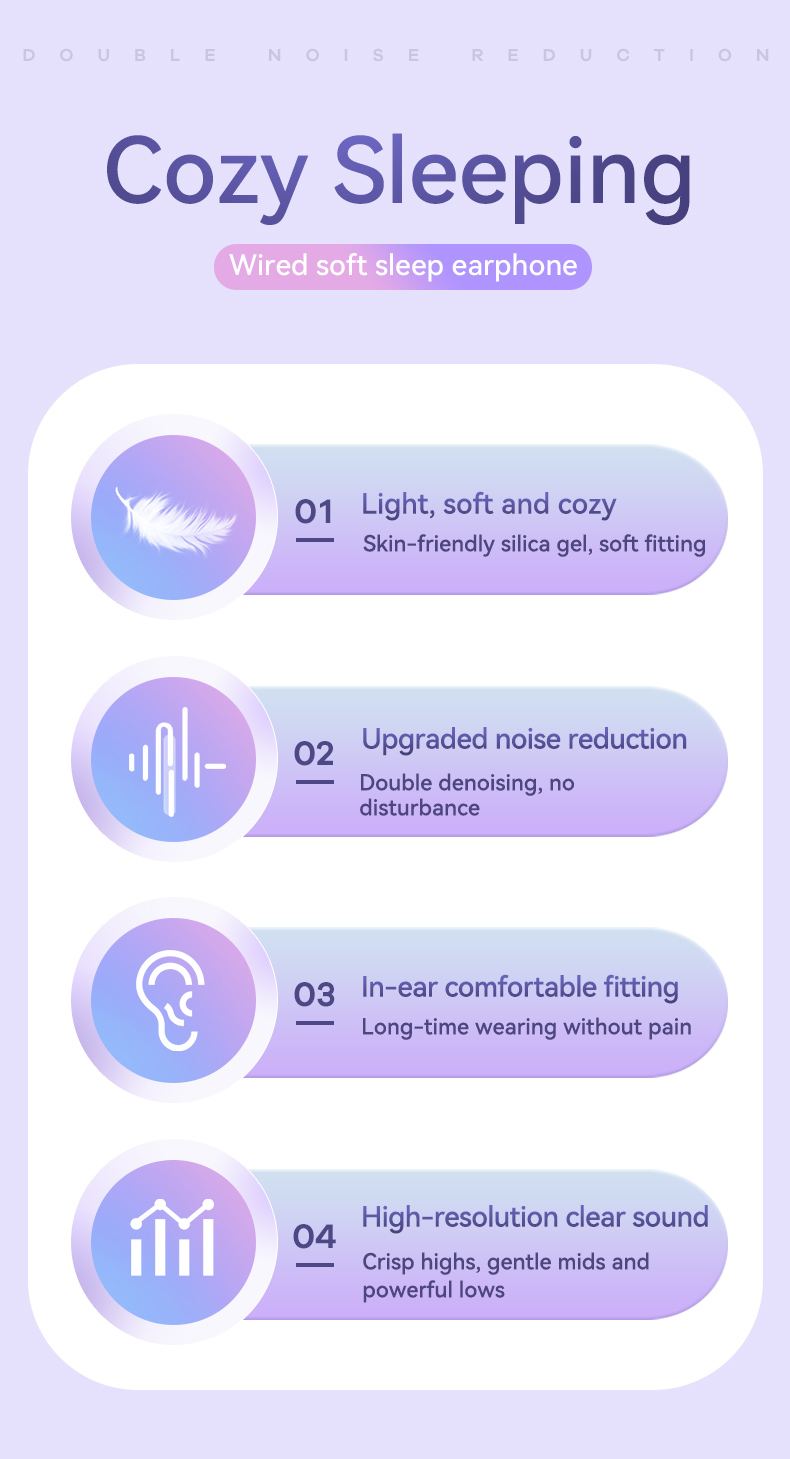 Ultra-soft Earbuds: Silicone ear shell, soft and comfortable to wear, perfect for side sleepers, cause no ear ache.