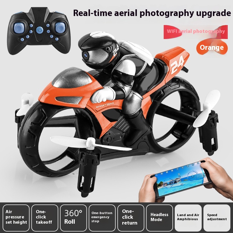 [Function]: Land and air dual-use two in one, taxi on the ground, flying in the air, one-key take-off, one-key landing, one-key return, 360°stunt roll, brilliant lights, 2.4G remote control.