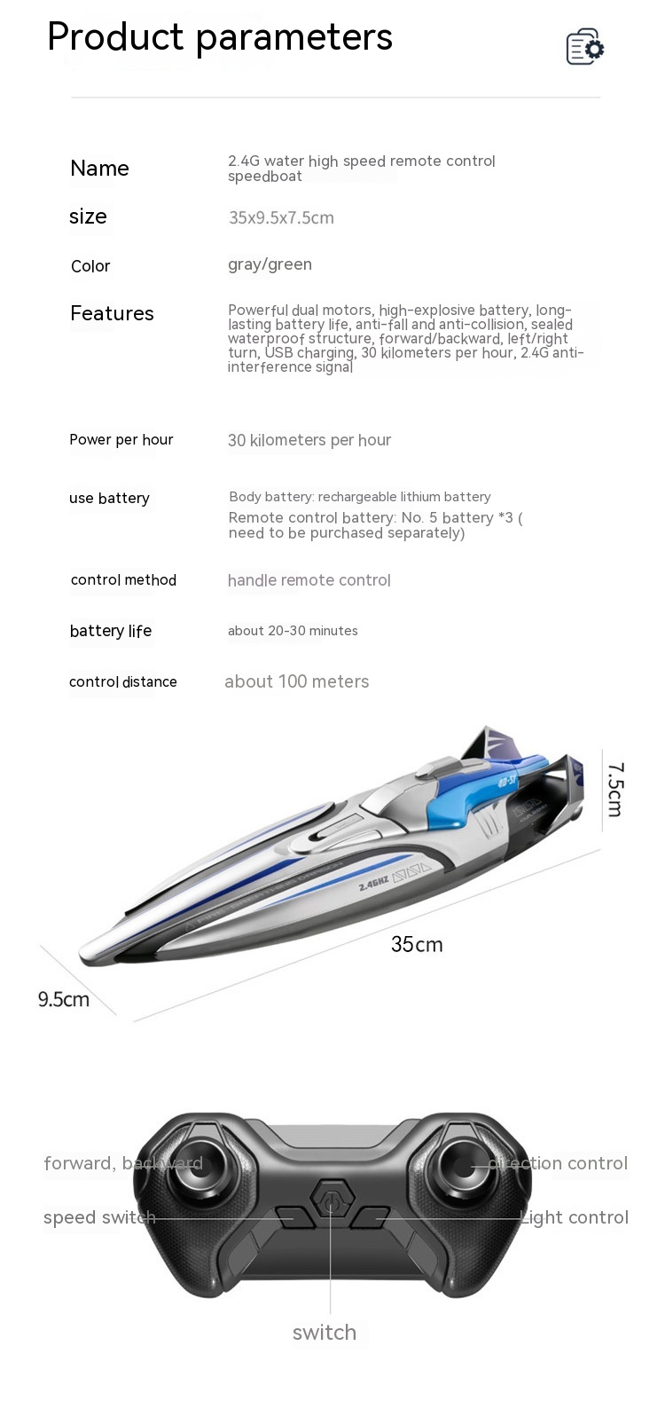 Remote control distance: 100 meters