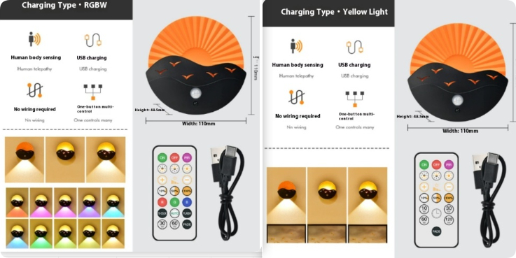 Light color: Sea Sunrise-rechargeable RGBW, Sea Sunrise-rechargeable yellow light, Sea Sunrise-battery type RGBW, Sea Sunrise-battery type yellow light