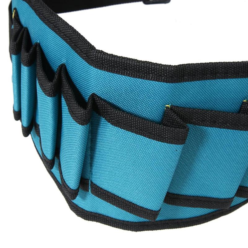 The multi-pocket tool belt has plenty of room to hold the tools you need to work. The bag has different sizes of compartments for any of your tools and equipment. The pouch can be conveniently attached to the belt for easy access to items.