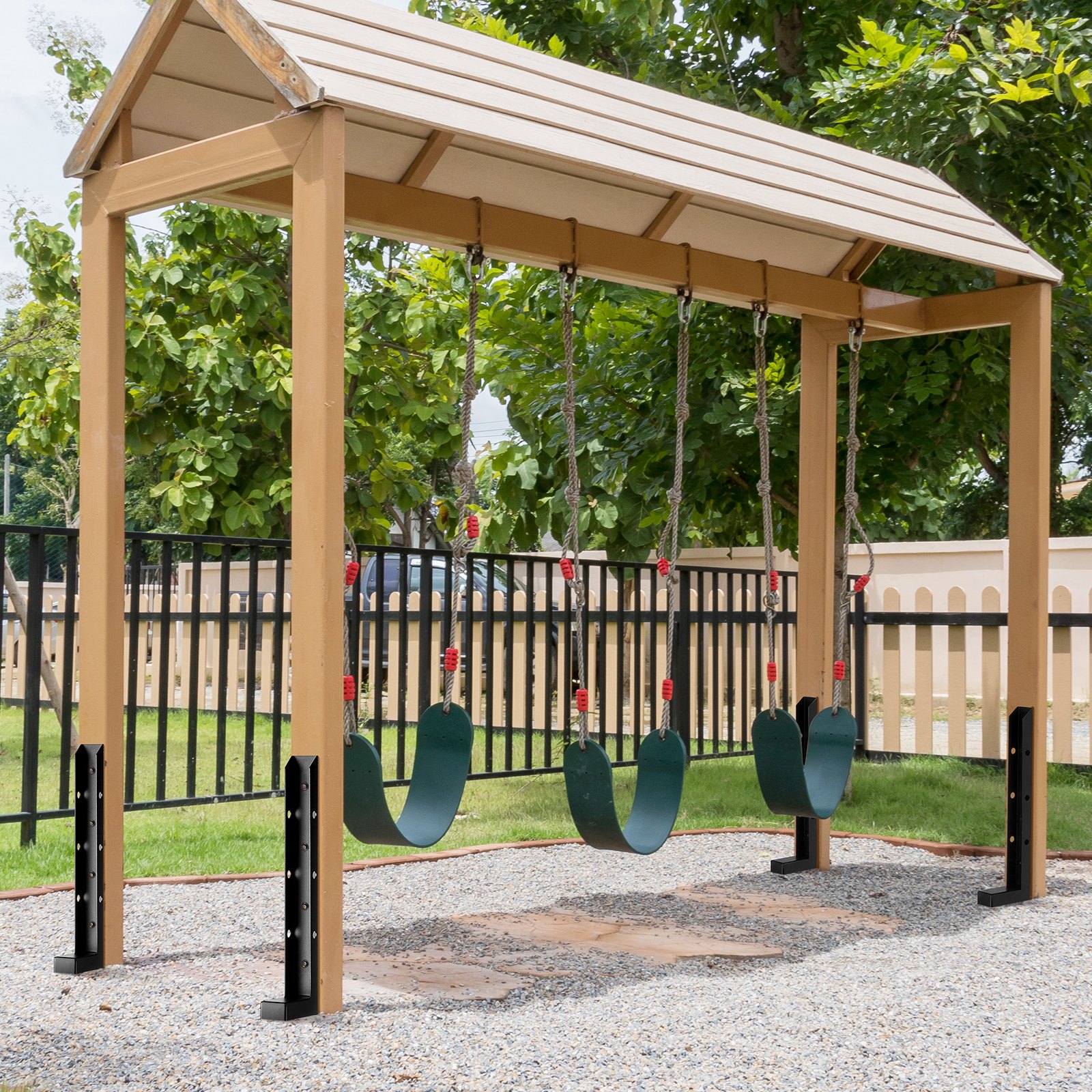 VEVOR Reparaturset für Zaunpfostenanker, 4er-Pack, Innendurchmesser 51 x 51 mm, robuste Stützpfähle für Zaunpfosten aus Stahl, Anker-Erdspie_ zur Reparatur von schiefen, gebrochenen Holzzaunpfosten