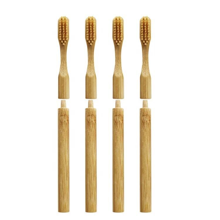 Replaceable Bamboo Toothbrush With Cylindrical Handle