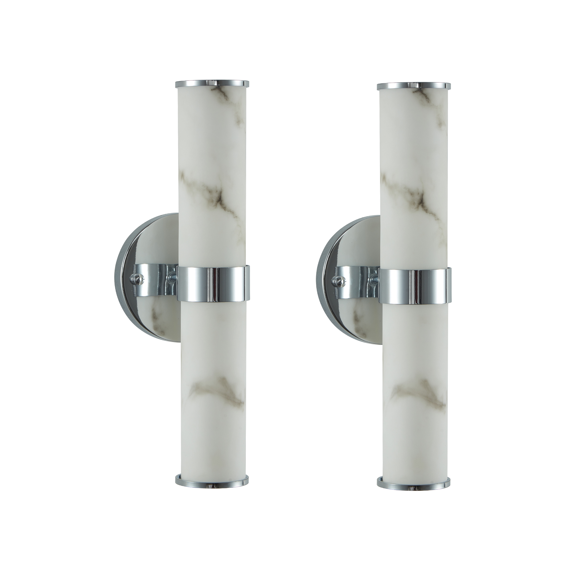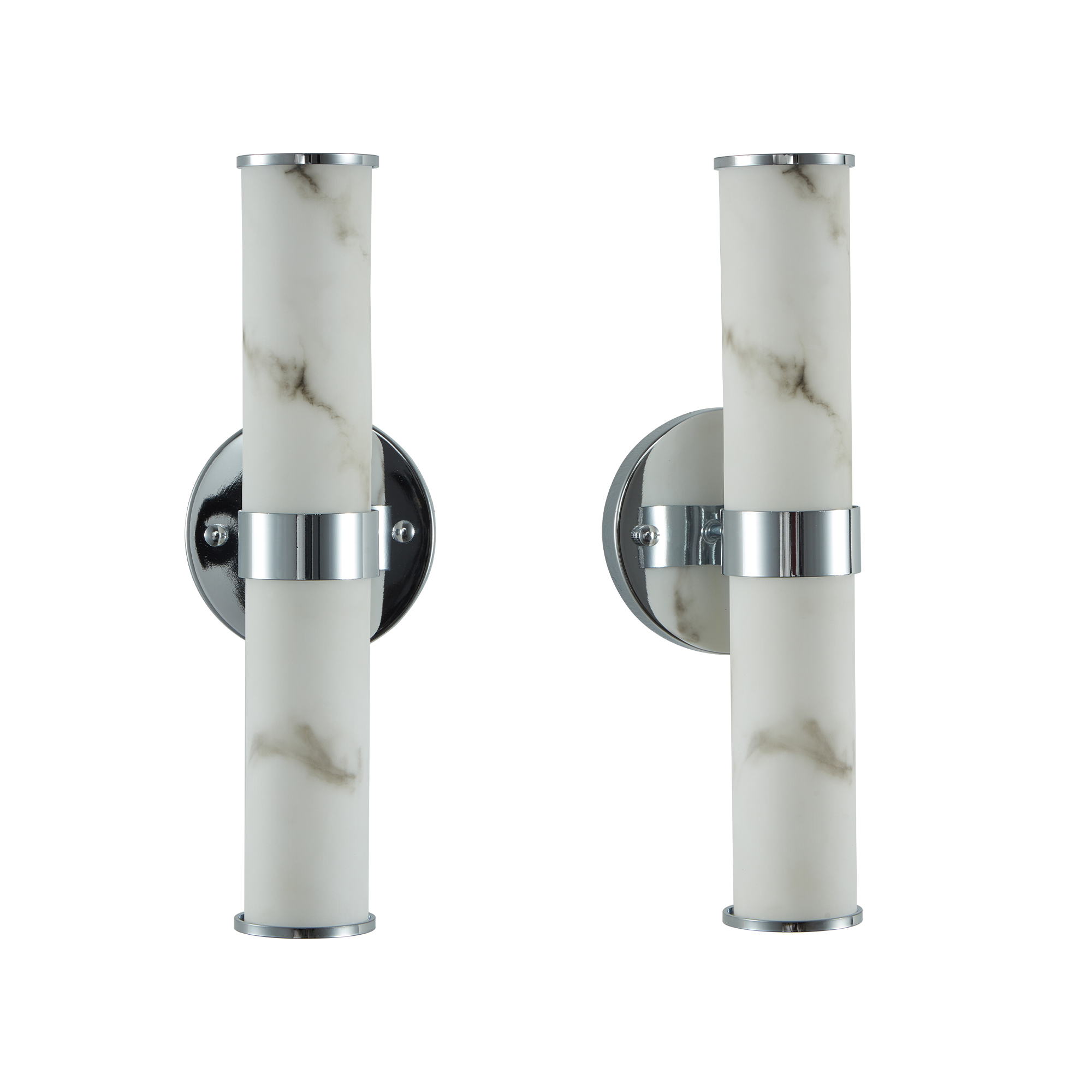 Resin Imitation Marble And Chrome Wall Sconce, Set Of 2,Modern Vertical Light Fixture For Bathrooms, Hallways, And Bedrooms Only Indoor