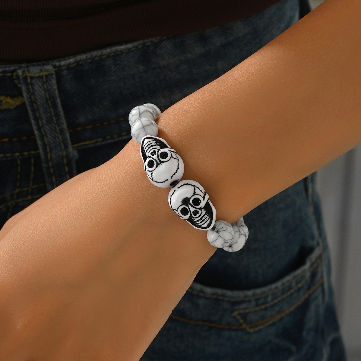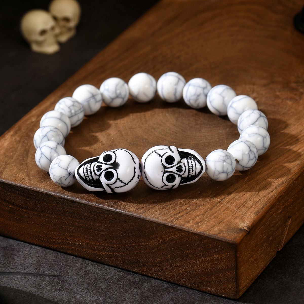 Resin Skull Bead Bracelet Vintage Irregular Bangle