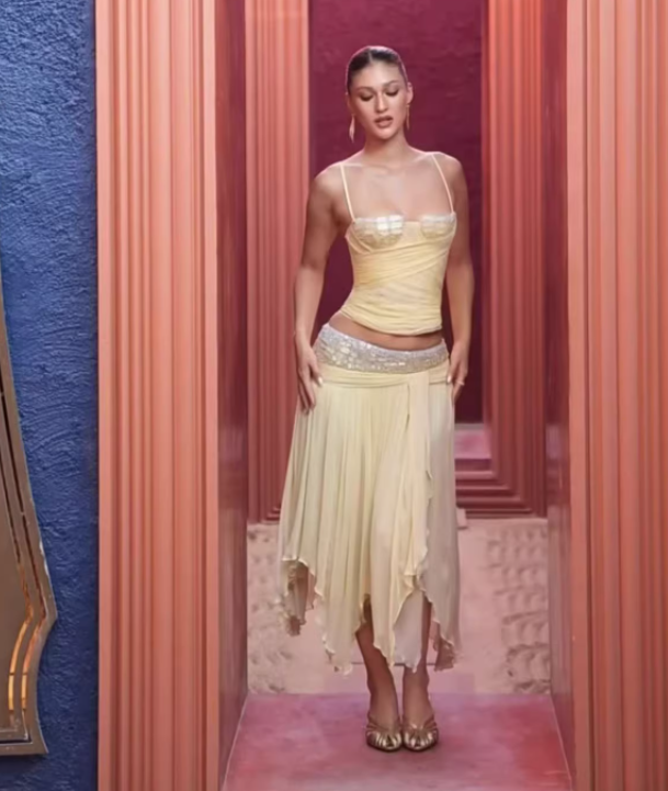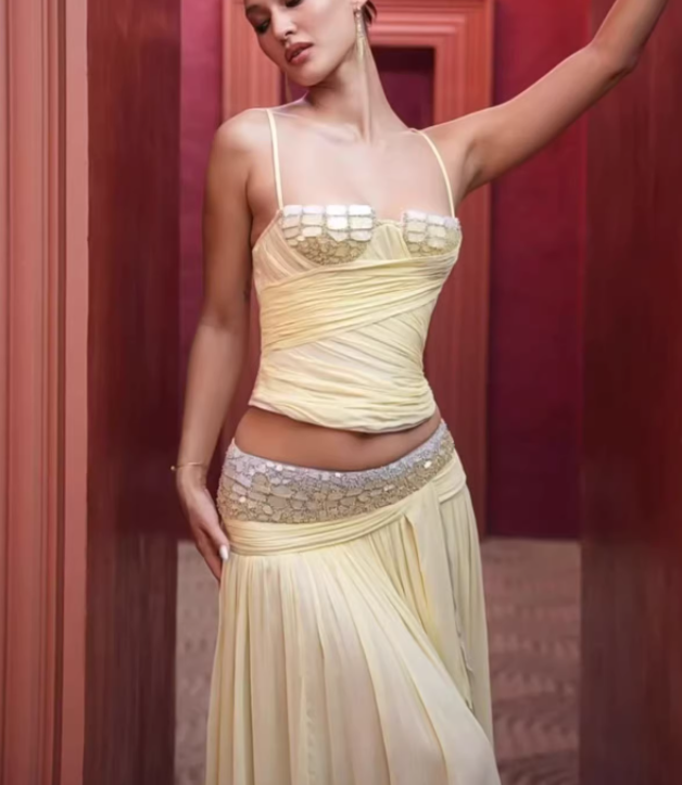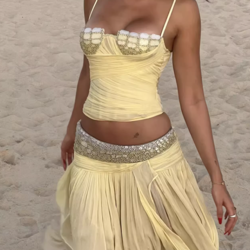 Resort Dress Shell Low-Cut Rhinestone Strap Top