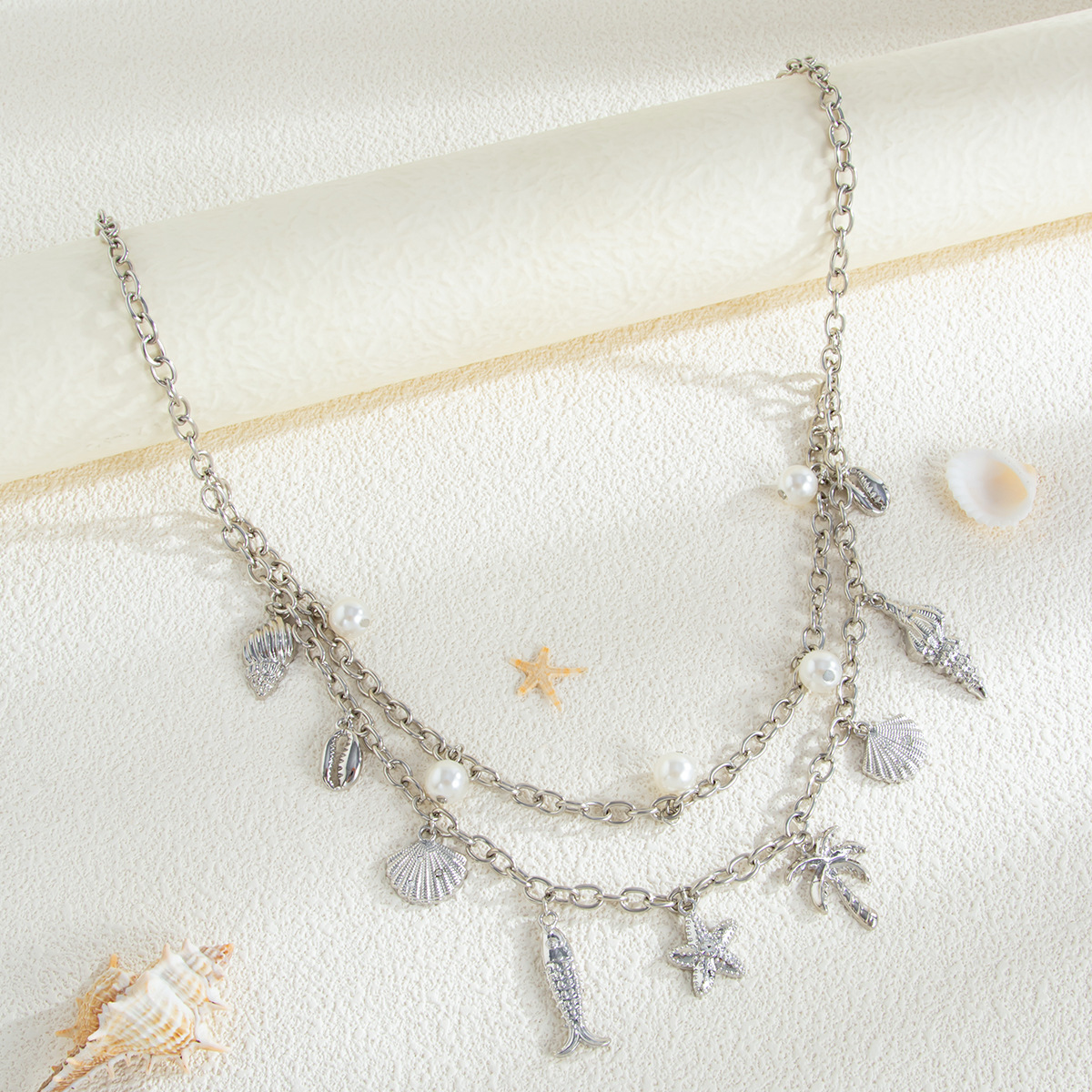 Resort-style Starfish And Scallop Shell Chain Waist Belt