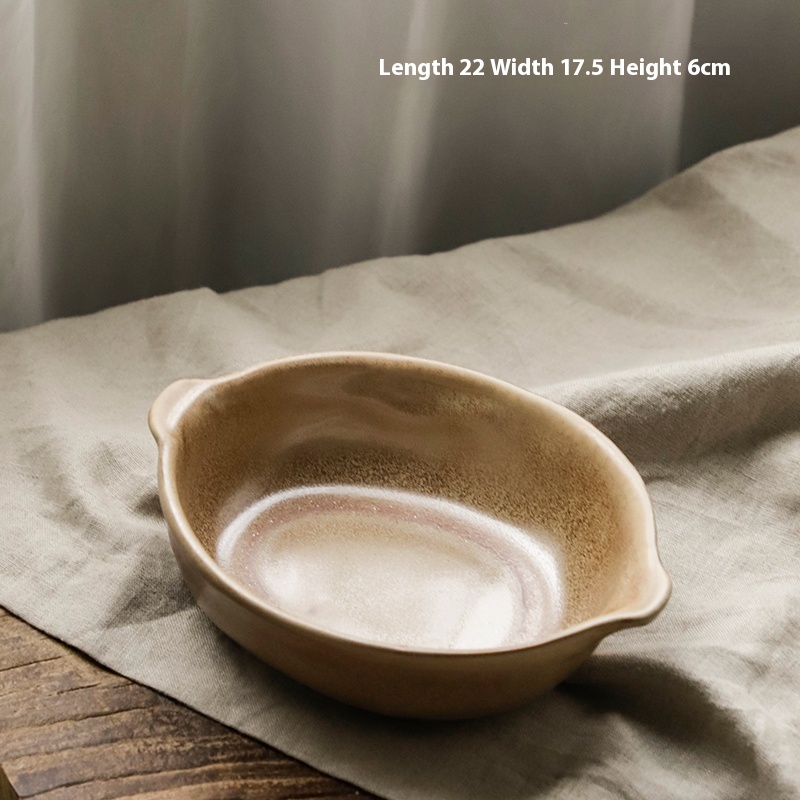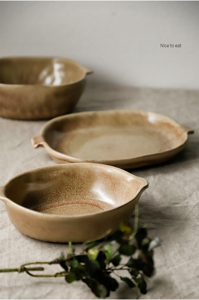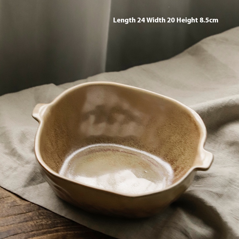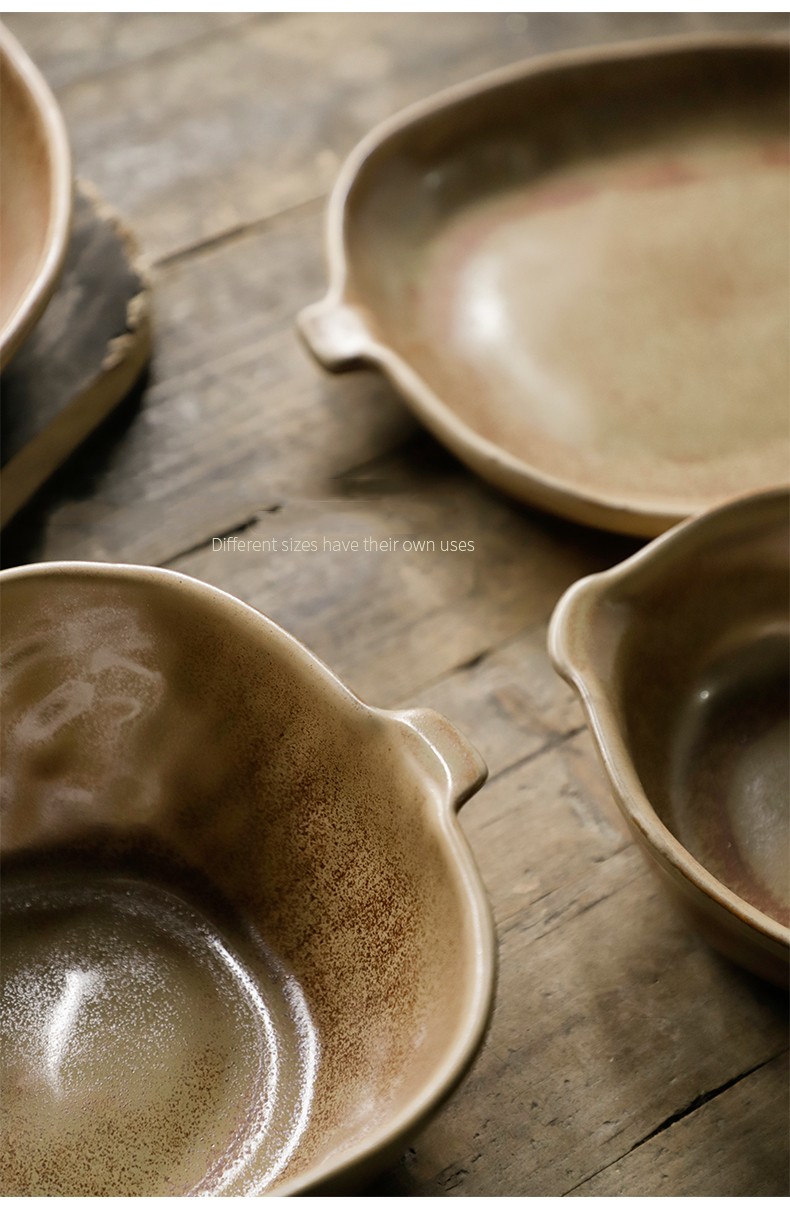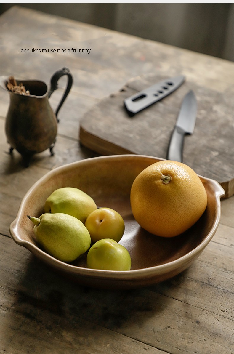 Restaurant Stoneware Fruit Plate Shaped Tableware Retro Double Handle Disk