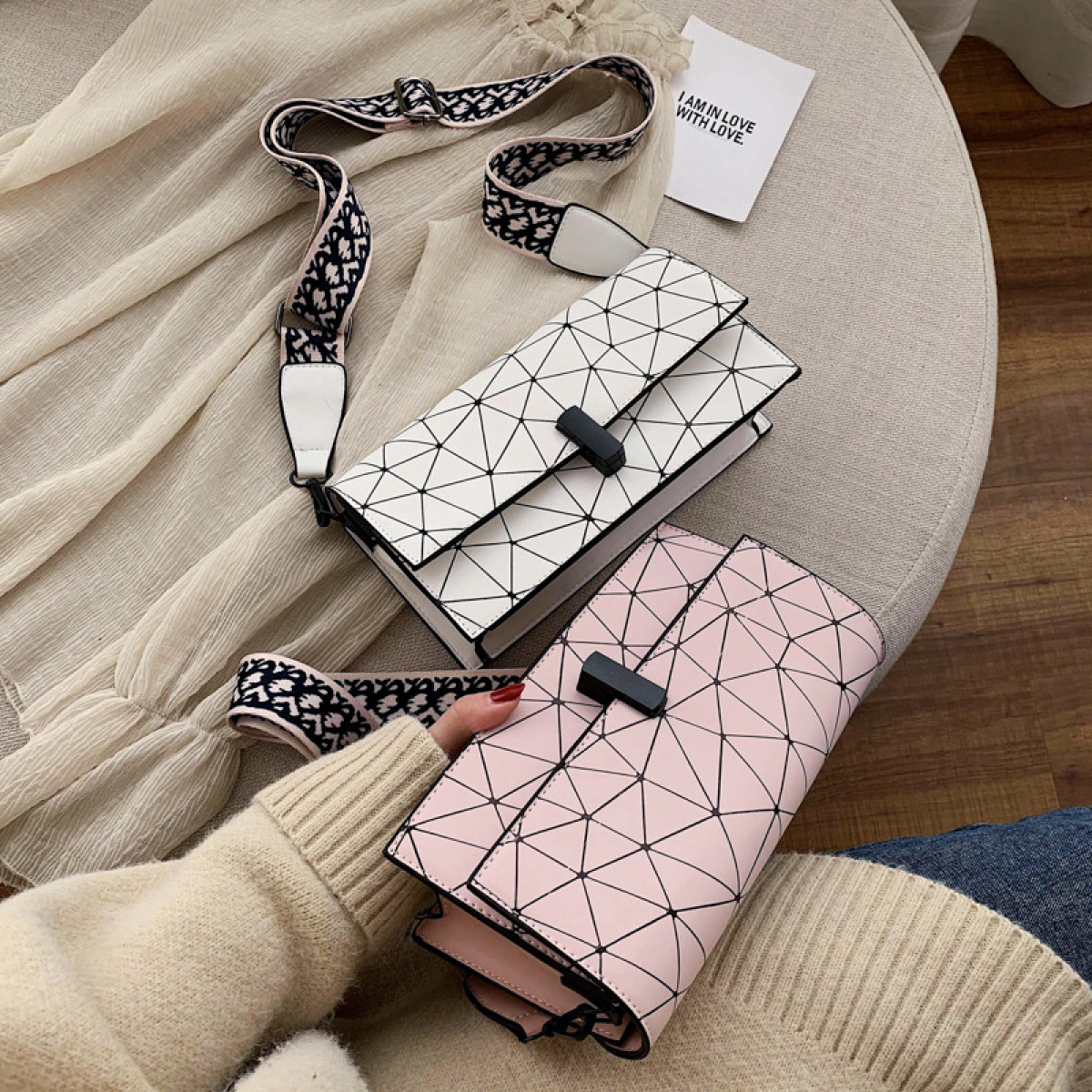 Style: Women's shoulder bagFabric texture: PUBag trend style: small square bagBag size: mediumColor: black, beige, silver, pink