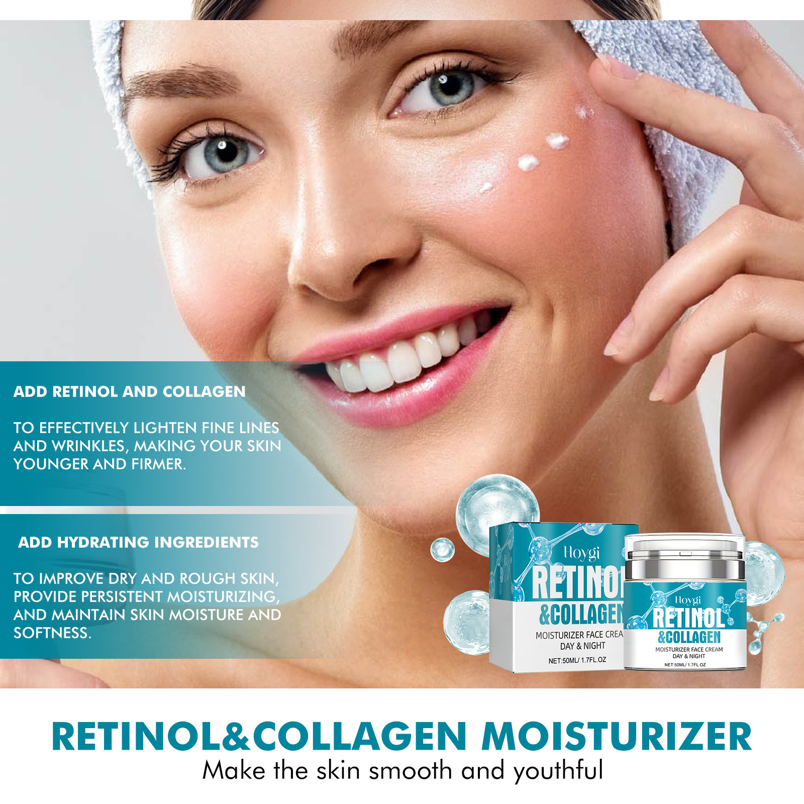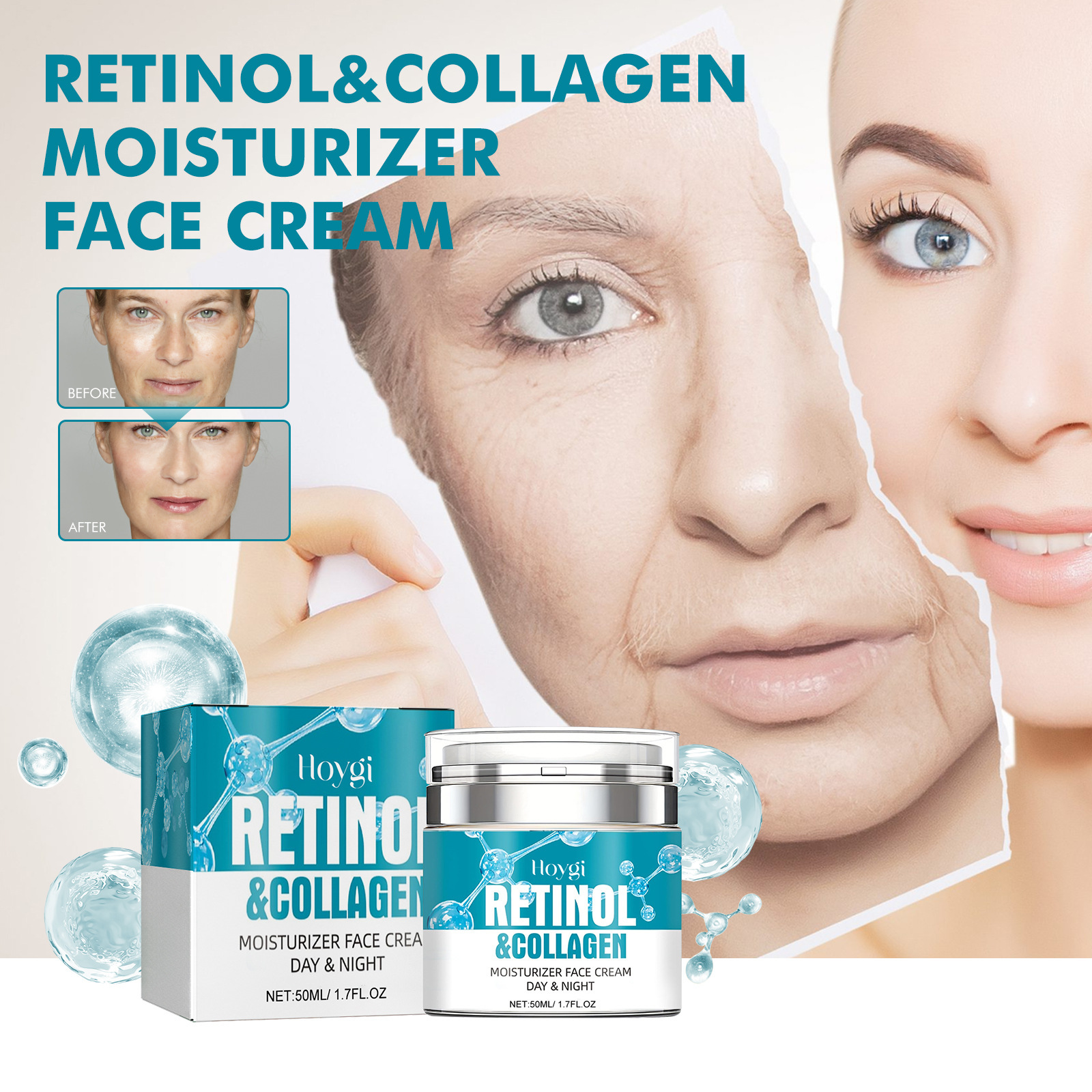 Ingredients: Water, glycerin, Hydrolyzed collagen, hyaluronic acid, vitamin E, Retinol