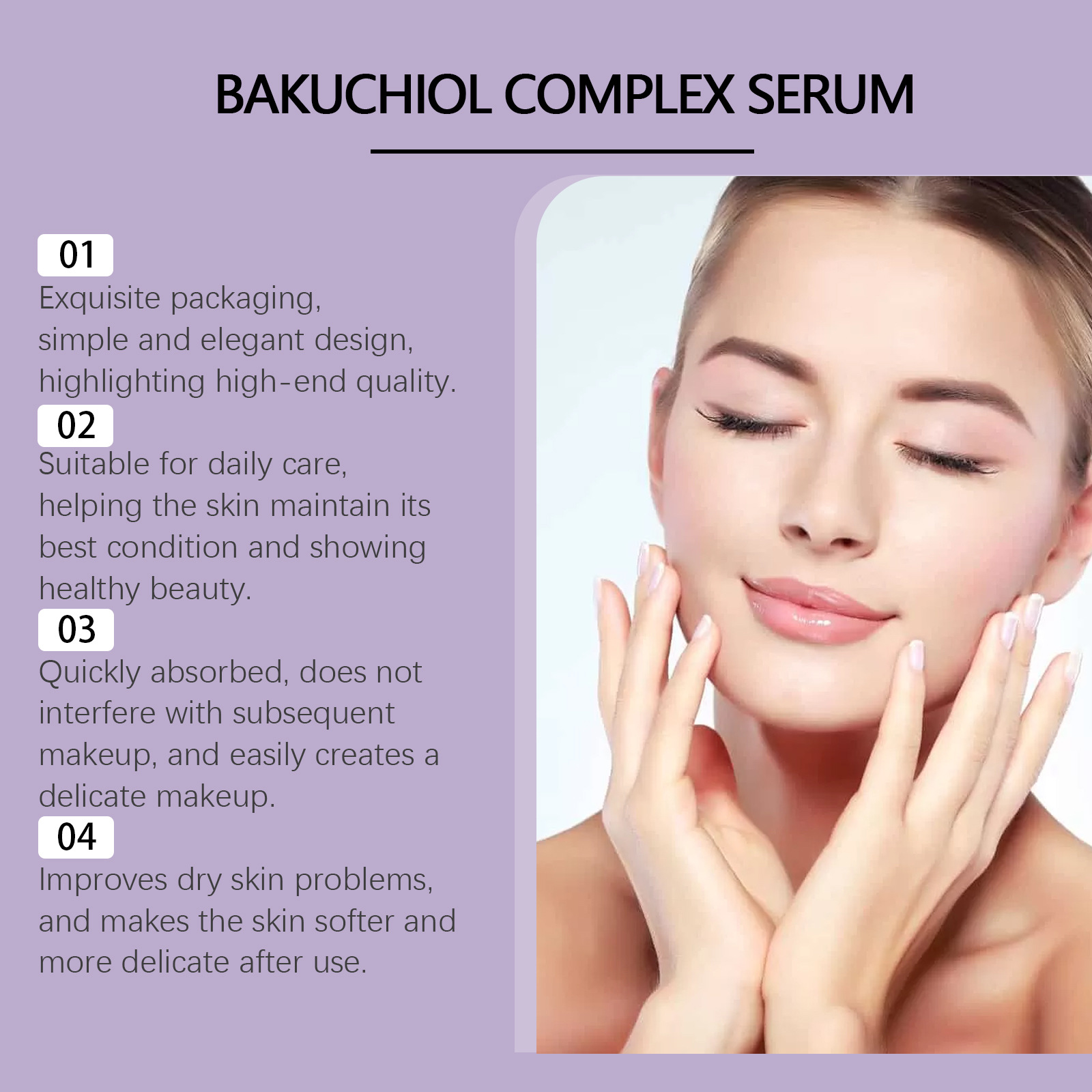Ingredients: Water, glycerol, Hydroxyethyl Cellulose, vitamin E (tocopherol), fructus psoraleae phenol, retinol, hyaluronic acid, nicotinamide, vitamin C (ascorbic acid)