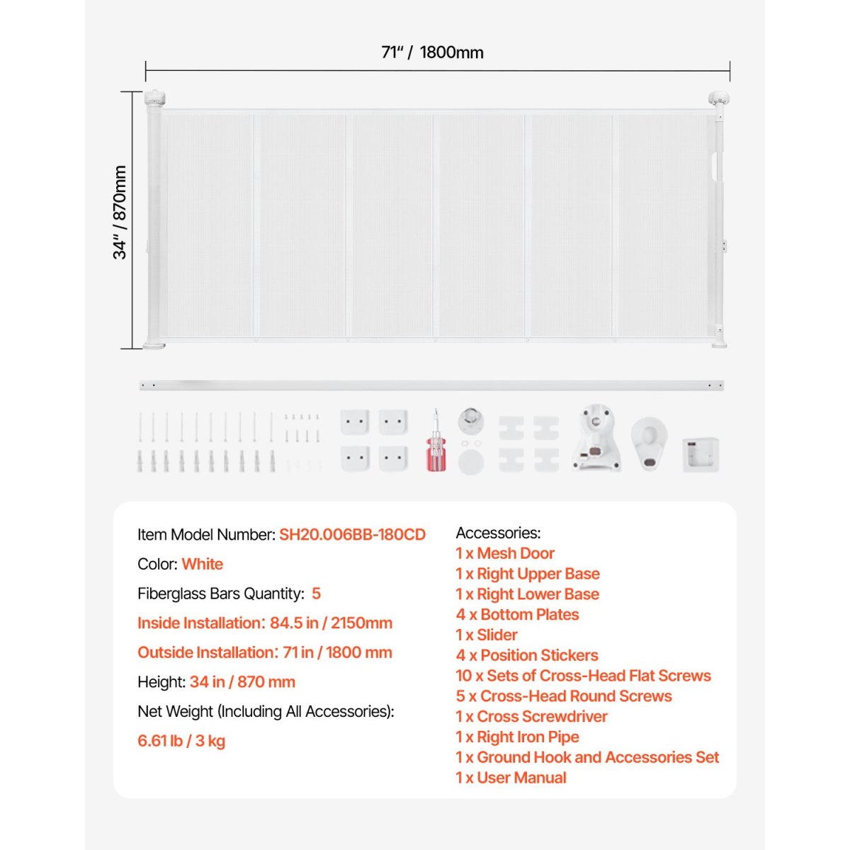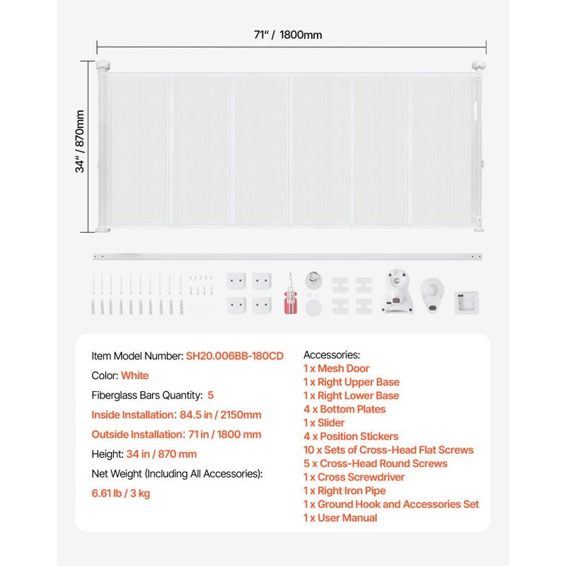 Secure Mesh Design: The mesh material is soft and gentle, providing better protection against accidental collisions for children and pets. Additionally, our mesh baby gate features a high-strength structure that is scratch-resistant and durable, effectively resisting pet impacts and scratches