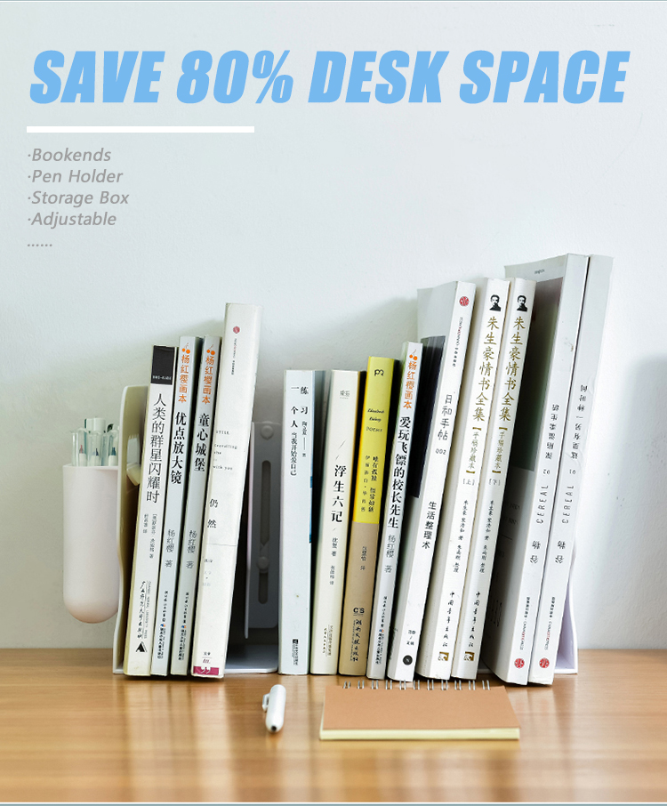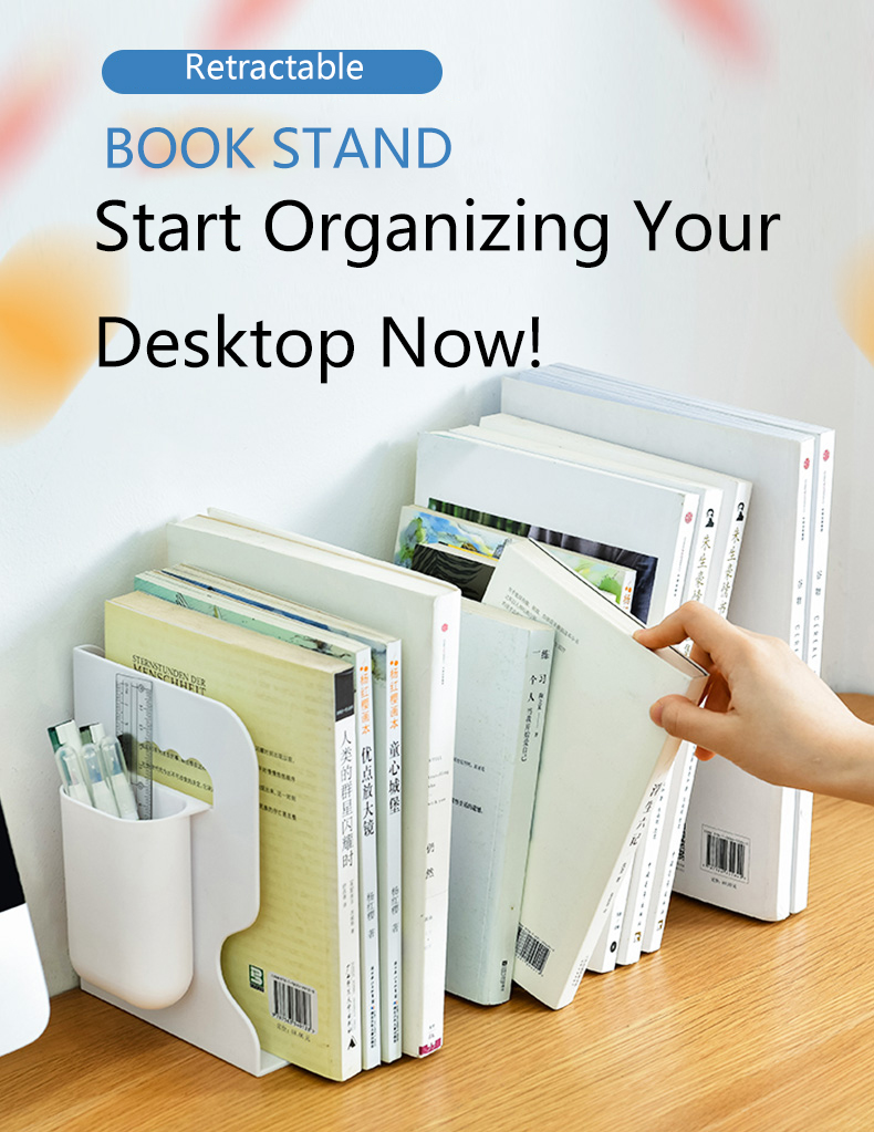 Retractable Bookends For Shelves Book Support Stand Adjustable Bookshelf With Pen Holder Desk Organizer Office Accessories