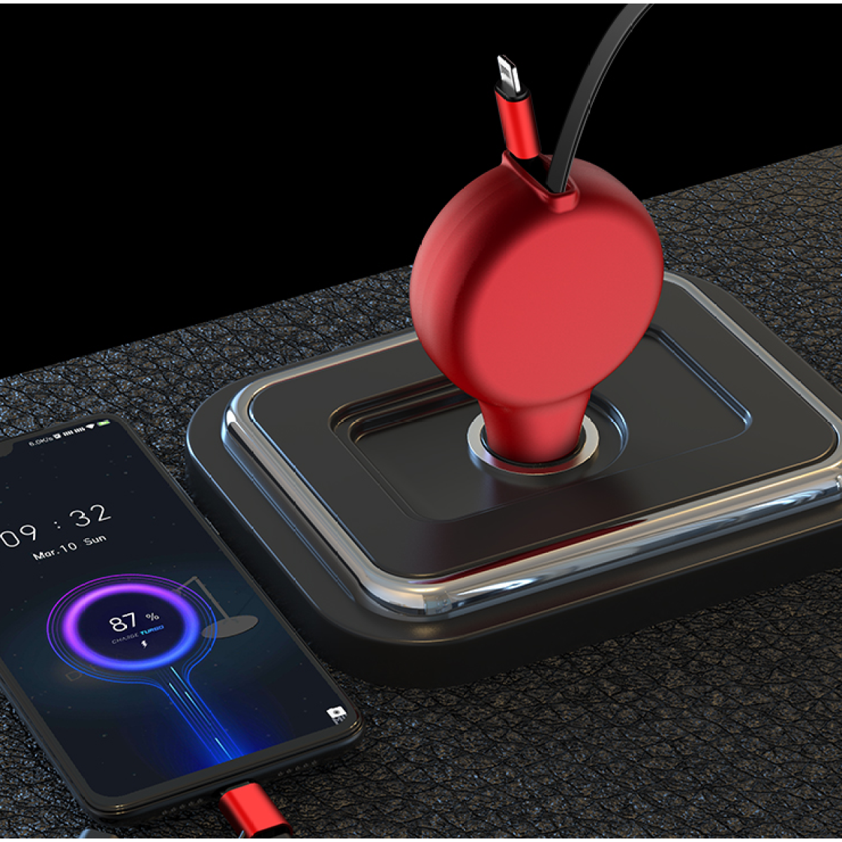 2 retractable cables, 3 charging heads, one USB, single line 1.5A, no quick charge
