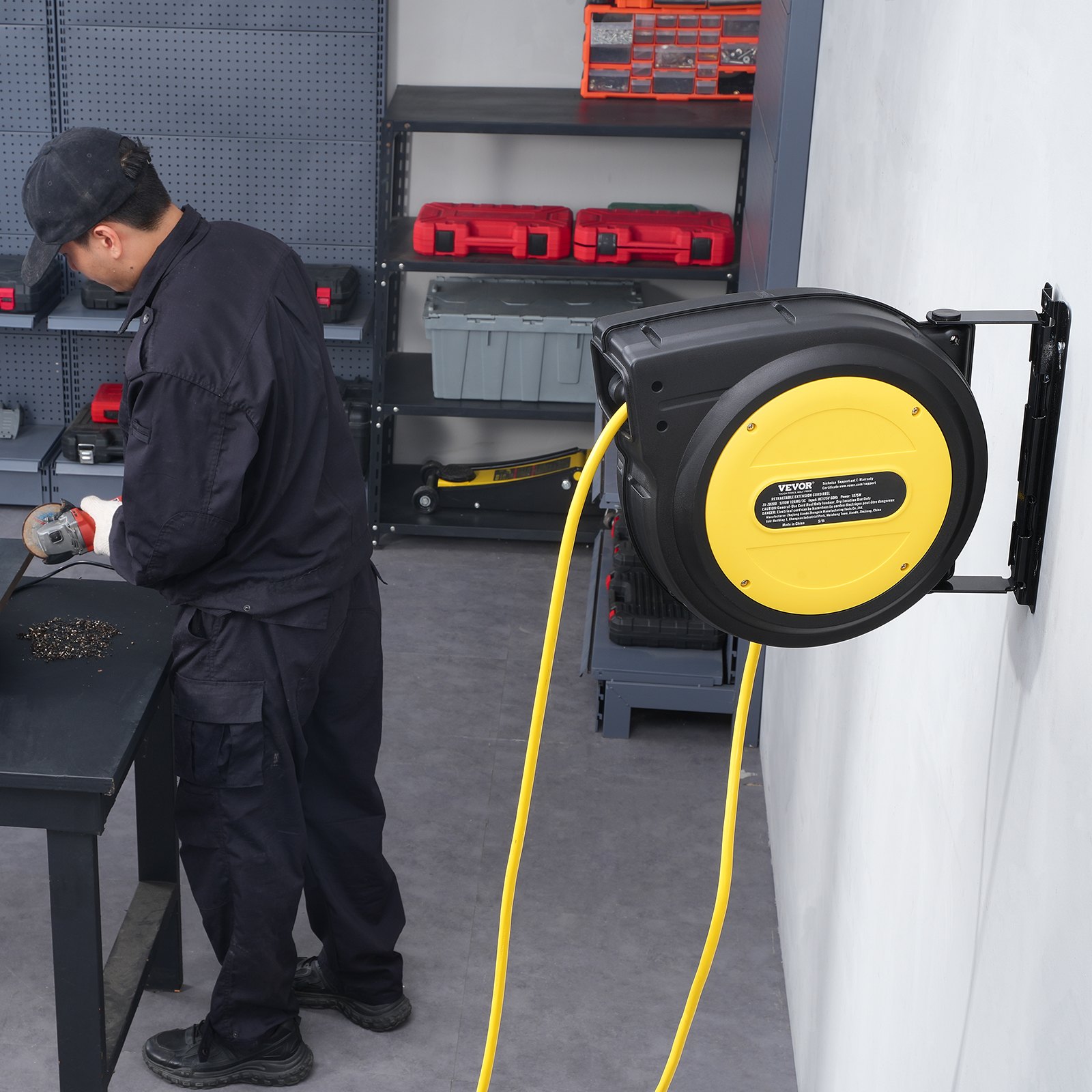 Overload Protection for Peace of Mind: Rigorously tested for electrical security, breaker lifespan, and on/off functionality, our retractable extension cord reel shields your devices from short circuits and overloads. Automatically cuts power if usage exceeds 15A, ensuring secure operation of your power tools. Simply press the reset button to restore power and keep working!