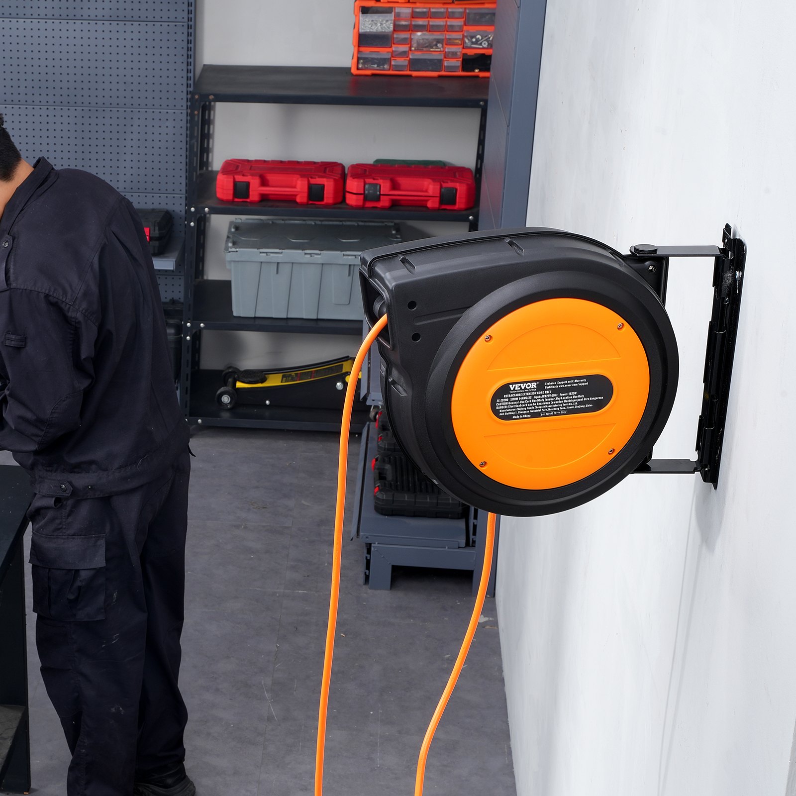Overload Protection for Peace of Mind: Rigorously tested for electrical security, breaker lifespan, and on/off functionality, our retractable extension cord reel shields your devices from short circuits and overloads. Automatically cuts power if usage exceeds 13A, ensuring secure operation of your power tools. Simply press the reset button to restore power and keep working!